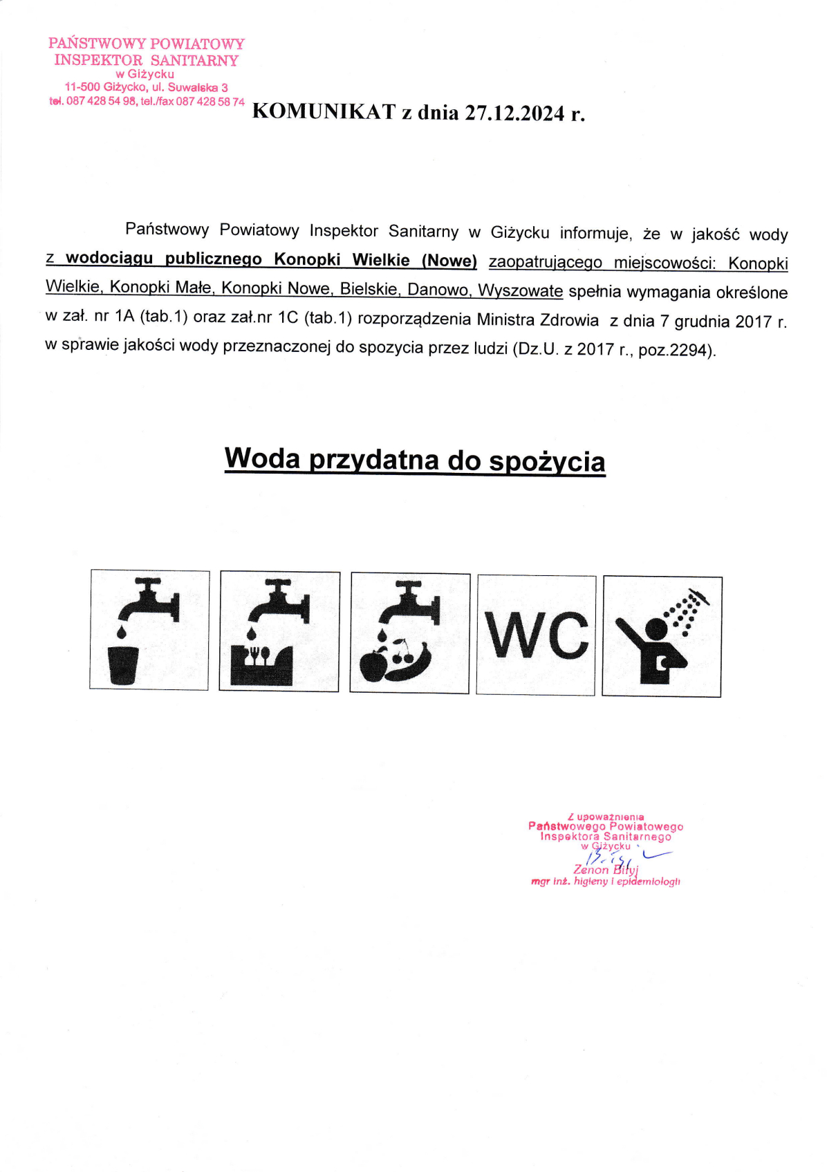 Komunikat z dnia 27.12.2024 r. dot. wodociągu publicznego Konopik Wielkie (Nowe)