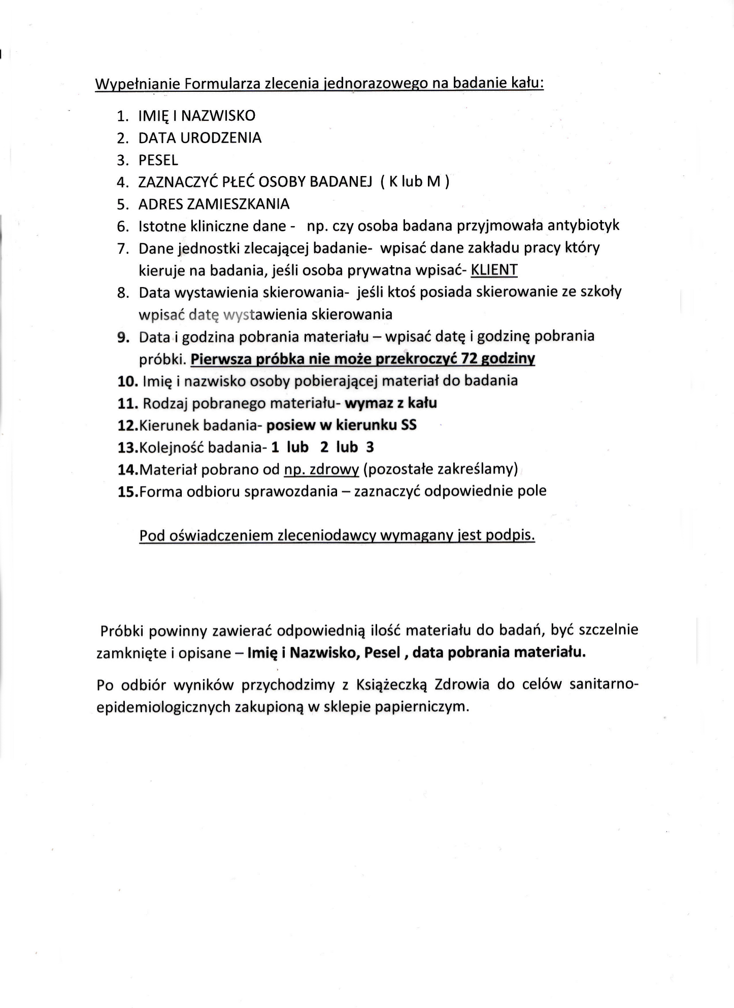 Zlecenie jednorazowe na badanie bakteriologiczneZlecenie_jednorazowe_na_badanie_bakteriologiczne.pdf 3.10MB Jak wypełniać formularz zlecenia jednorazowego na badania