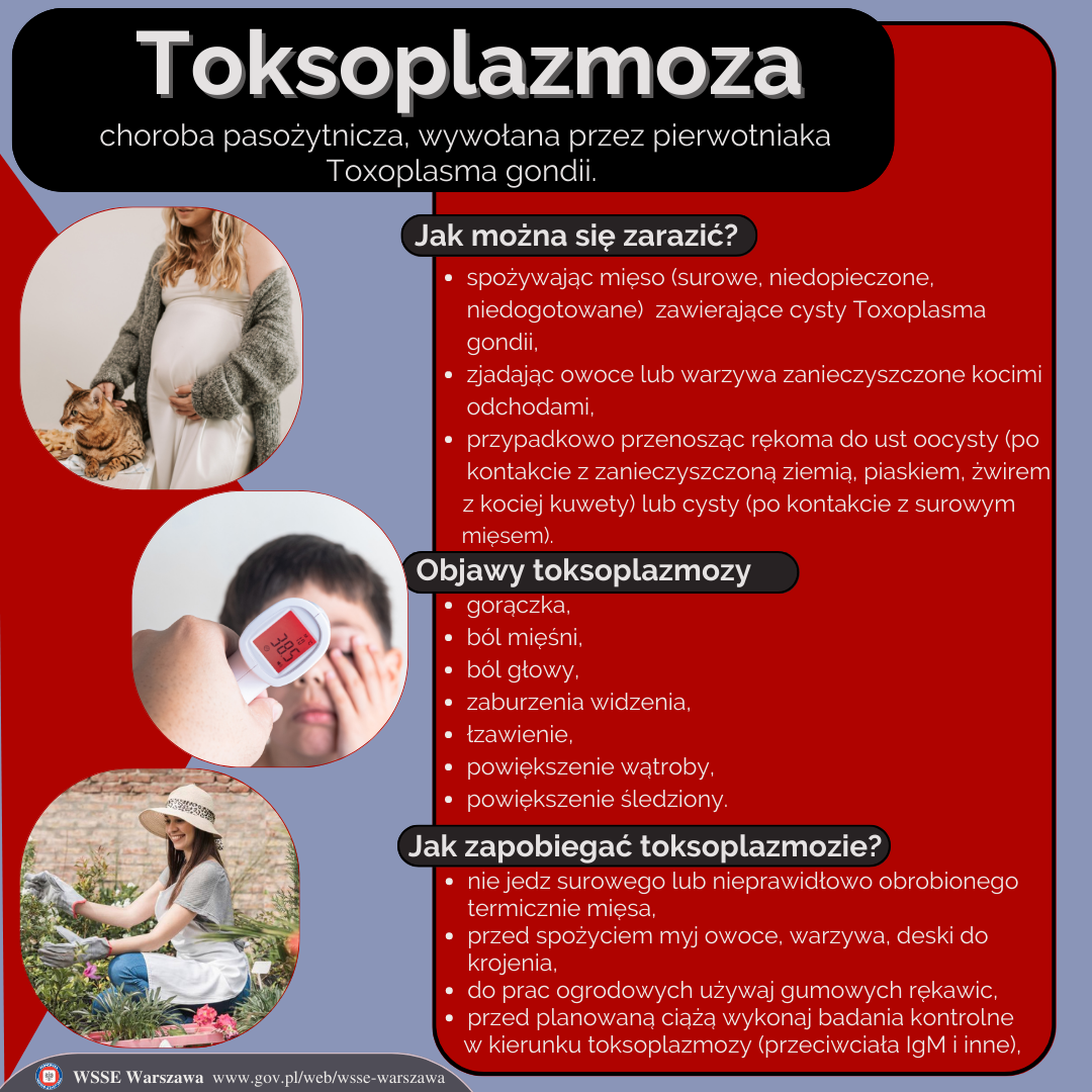 Do pracy w ziemi, która może być zanieczyszczona kocimi odchodami (działki, ogródki) i sprzątania kocich kuwet zakładajmy rękawiczki, które przed zdjęciem należy opłukać wodą. Pamiętajmy, że posiadanie kota nie stanowi bezpośredniego ryzyka, gdyż oocysty bezpośrednio po wydaleniu nie są zakaźne, codzienne usuwanie kocich odchodów z kuwety zapobiega dojrzewaniu oocyst.