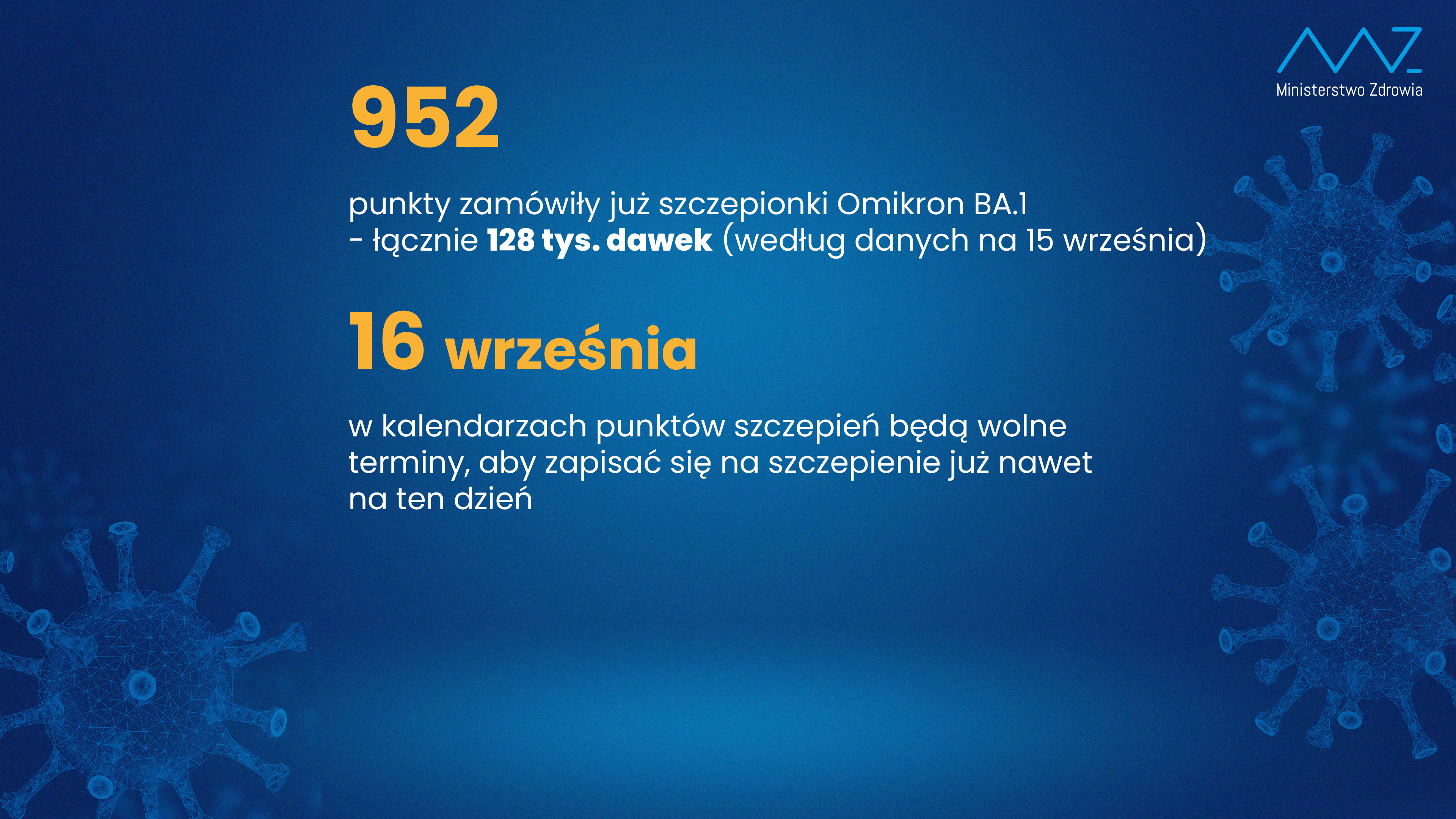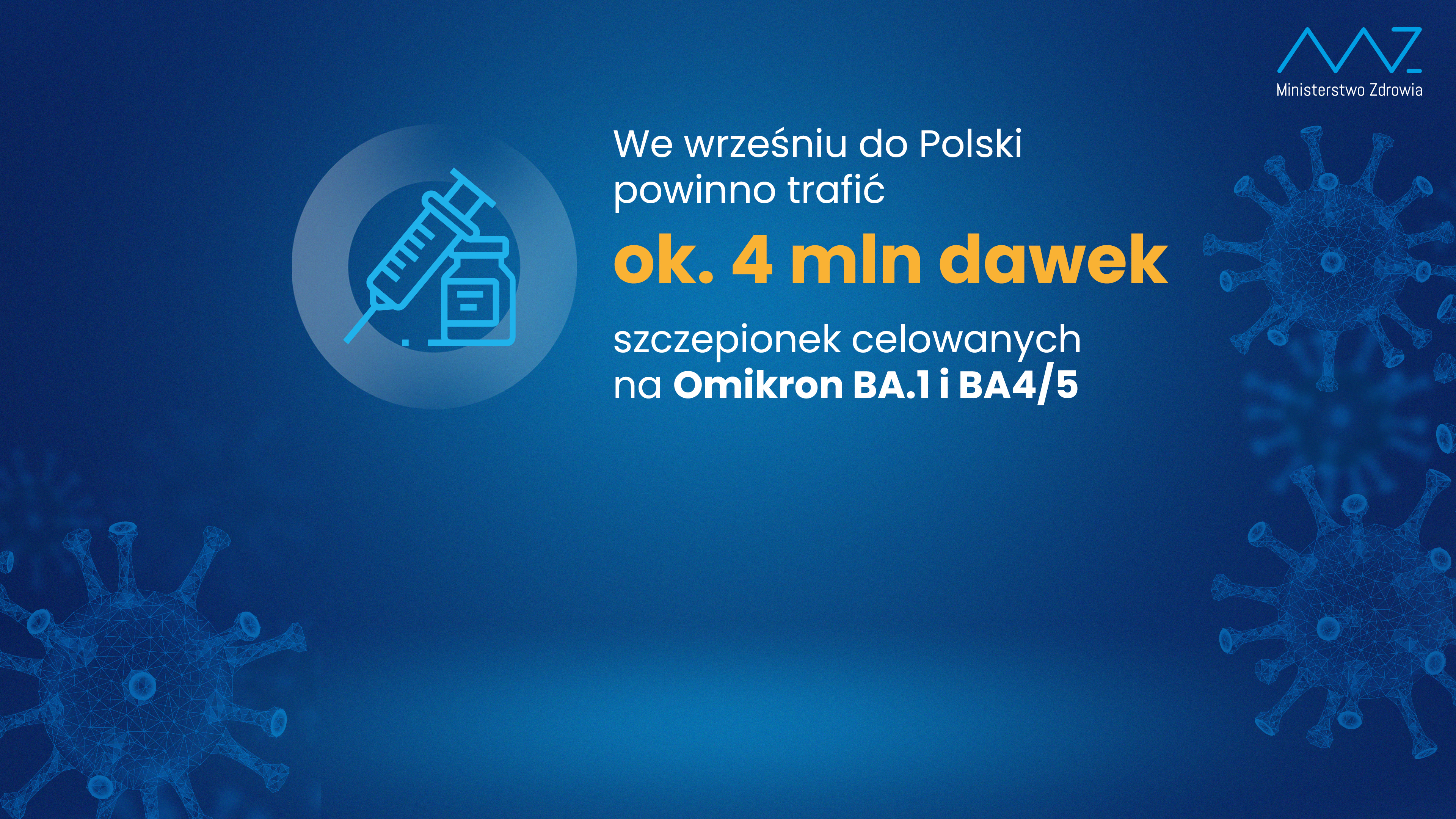 We wrześniu do Polski powinno trafić ok. 4 mln dawek szczepionek celowanych na Omikron BA.1 i BA 4/5. Już teraz blisko tysiąc punktów zamówiło 128 tys. dawek szczepionki Omikron BA.1.