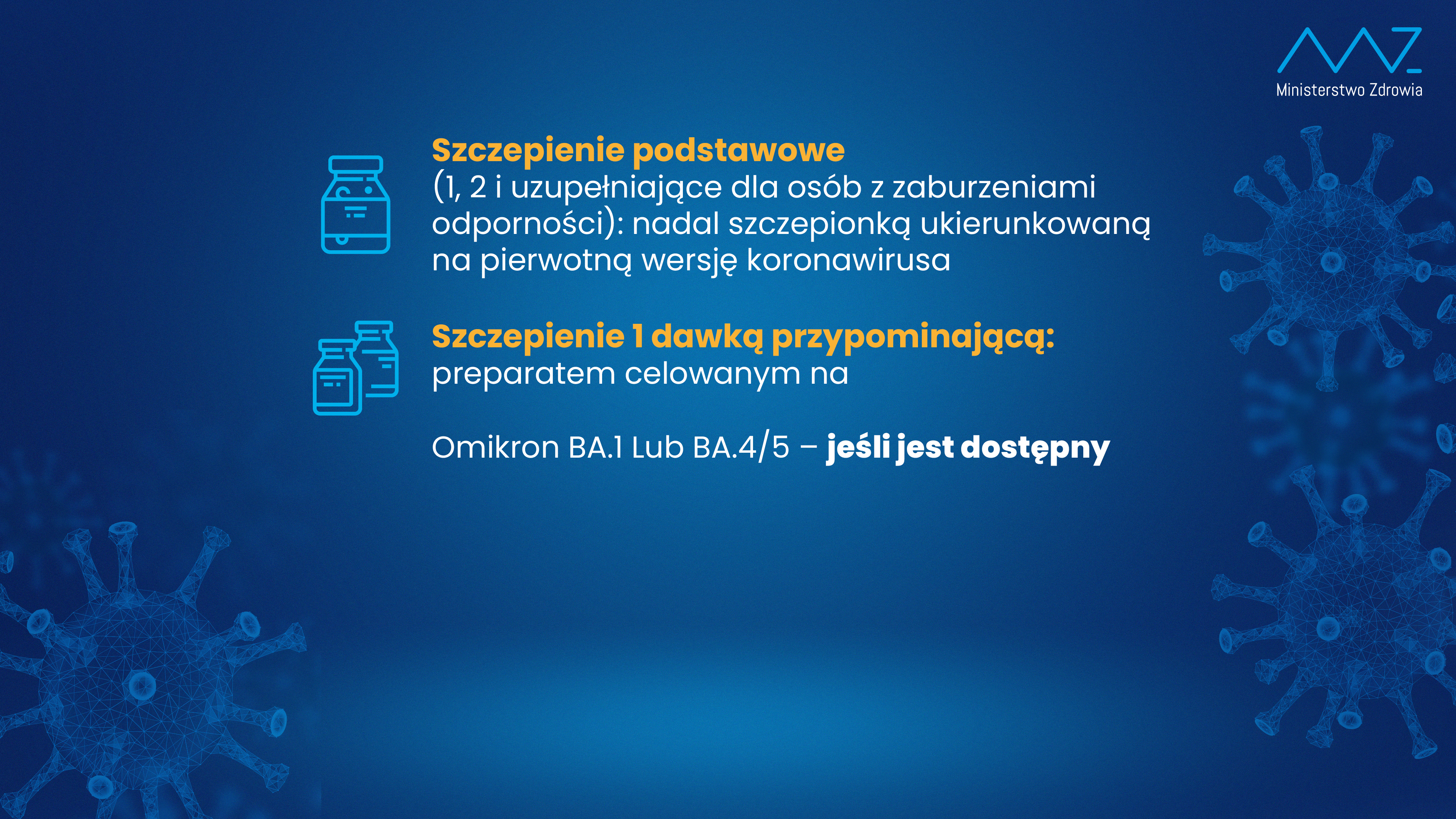 Szczepienie drugą dawką przypominającą będzie wykonywane preparatami przeciw wariantom Omikron BA.1 lub BA.4/5. W blisko 90 proc. przypadków chronią one przed ciężkim przebiegiem choroby COVID-19 lub hospitalizacją.