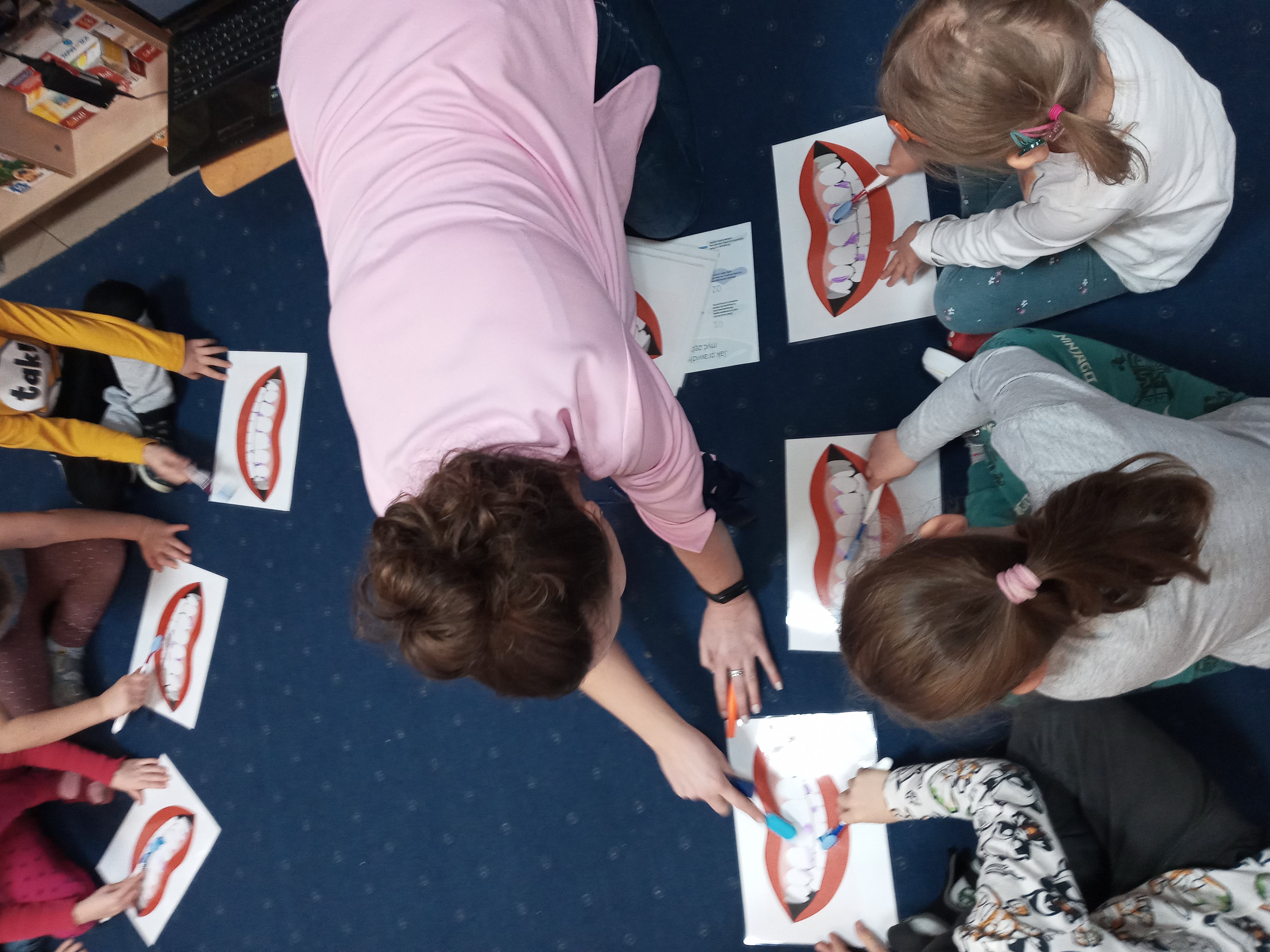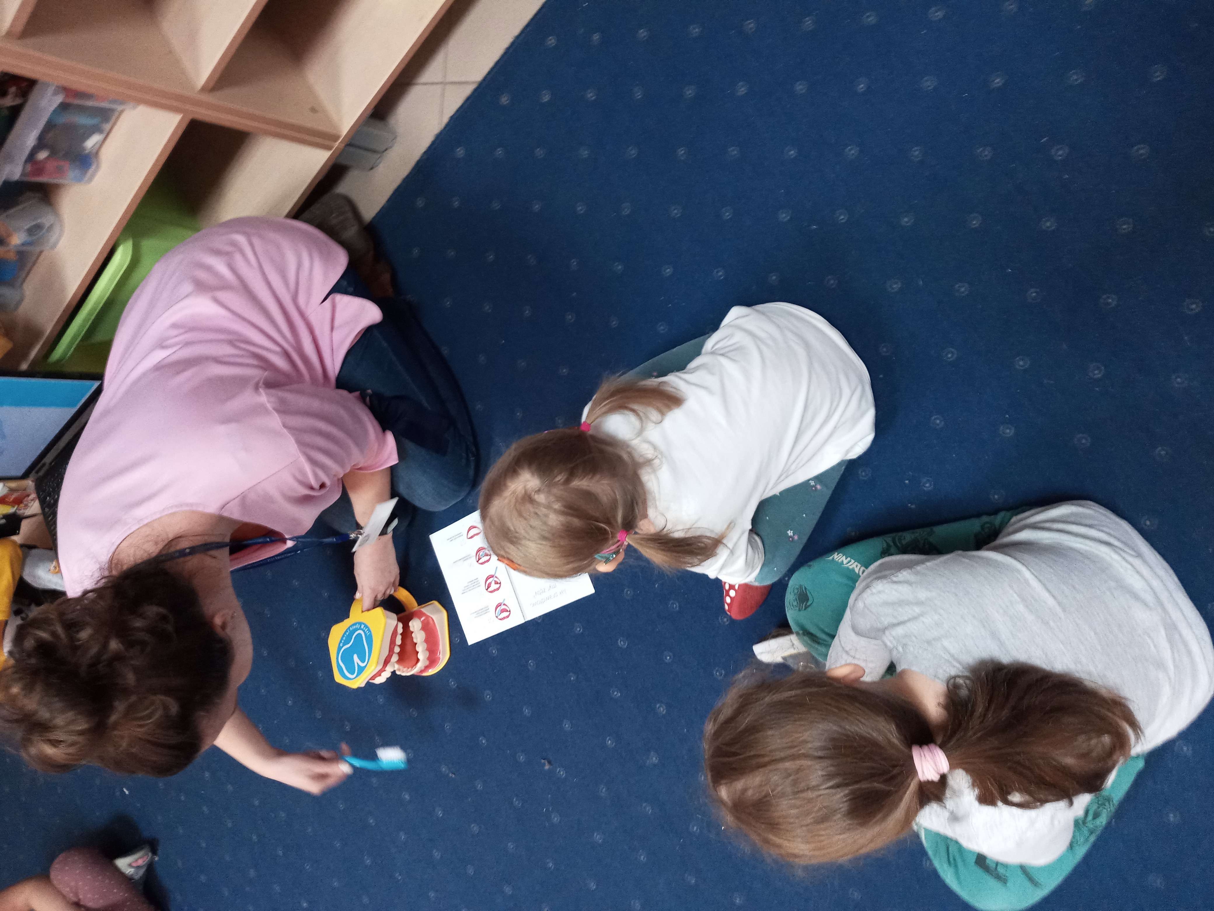Dnia 25.11.2022r. pracownicy Powiatowej Stacji Sanitarno -Epidemiologicznej w Gnieźnie przeprowadzili zajęcia pt. „Mam zdrowe zęby” z dziećmi uczęszczającymi do Przedszkola Niepublicznego Akademia Misio w Gnieźnie. Dzieciom przypomniano i pokazano jak prawidłowo myć zęby, mogły przećwiczyć szczotkowanie zębów na planszach i modelu szczęki. Przeprowadzono także zajęcia nt. roli wapnia zawartego min. w mleku i jego produktach dla zdrowia zębów i kości. Dzieci otrzymały ulotkę pt. „Mam zdrowe zęby” oraz mogły skosztować produkt mlecznego.