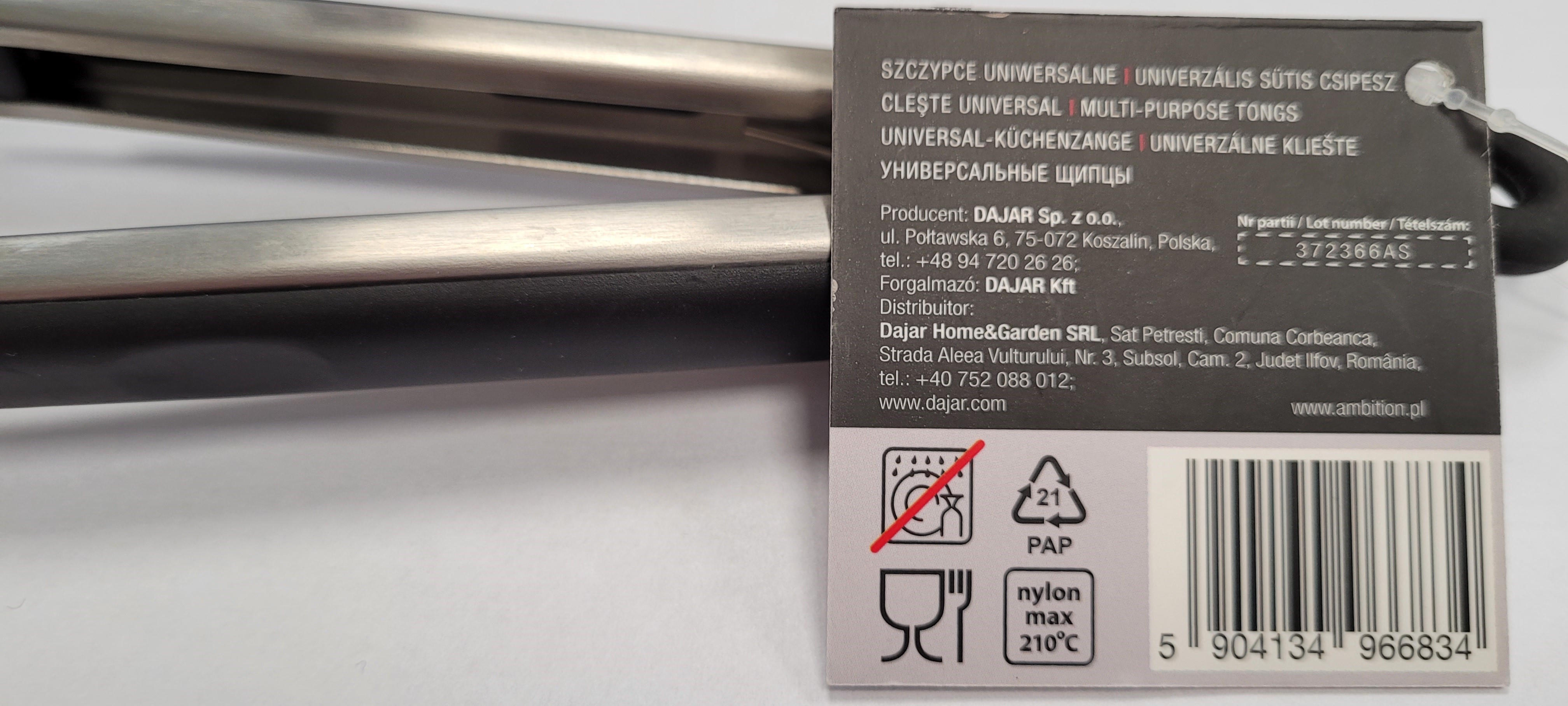 Ostrzeżenie publiczne dotyczące wyrobu do kontaktu z żywnością: Migracja pierwszorzędowych amin aromatycznych z produktu Szczypce uniwersalne 23cm Ambition