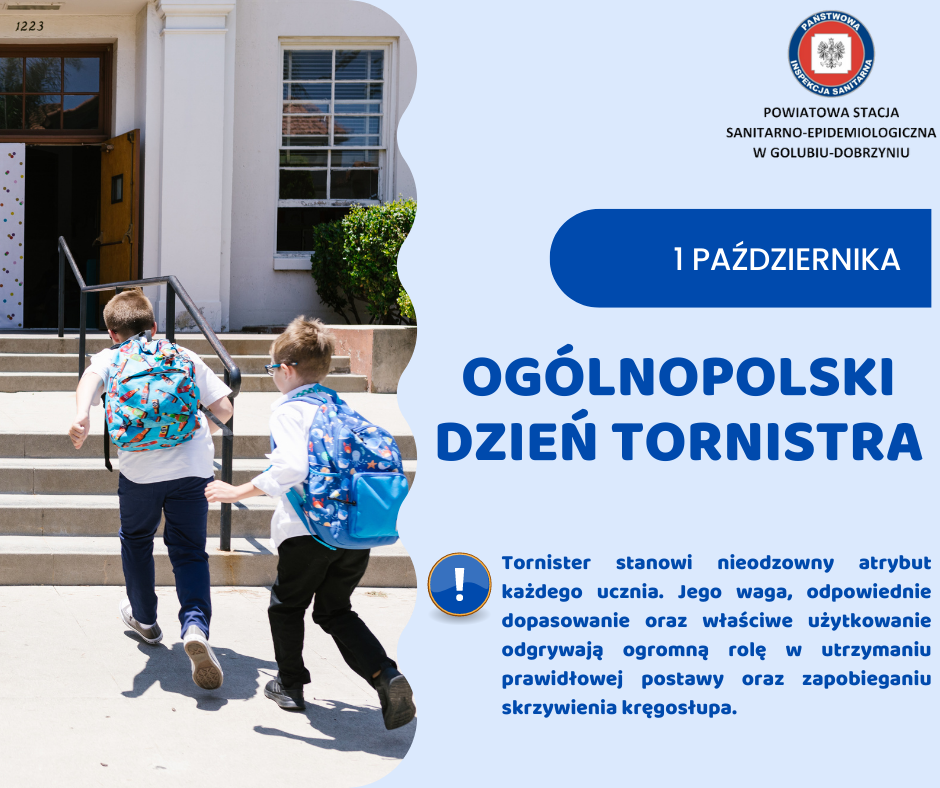 Ogólnopolski Dzień Tornistra został ogłoszony w 2018 roku przez Ministra Edukacji Narodowej. Dzień ten został ustanowiony na rzecz edukacji prozdrowotnej ukierunkowanej na profilaktykę wad postawy, w ramach której prowadzone są działania Ministerstwa Edukacji Narodowej we współpracy z Państwową Inspekcją Sanitarną.