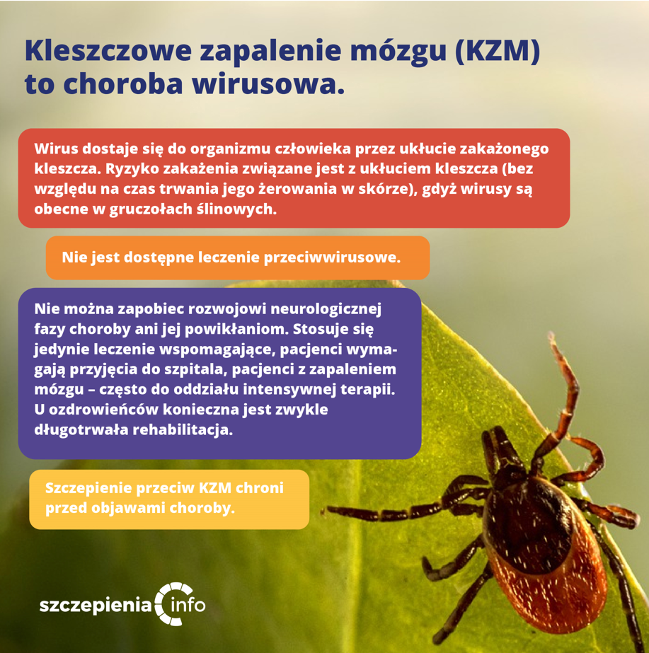 Kleszczowe Zapalenie Mózgu (KZM) to jedna z wielu chorób przenoszonych przez kleszcze i jedyna, na którą można się zaszczepić. KZM to ostra choroba wirusowa, która często wiąże się z powikłaniami neurologicznymi.