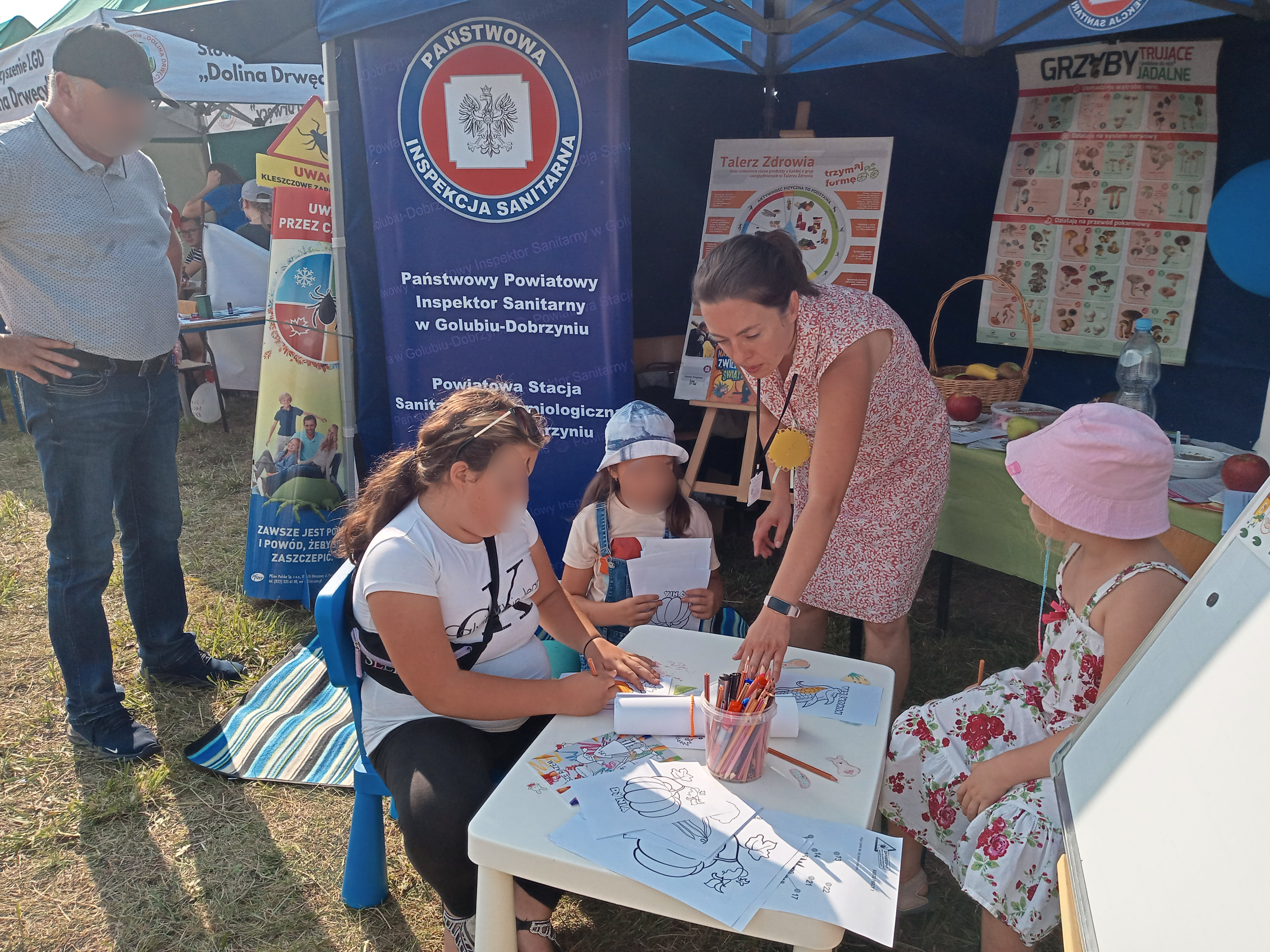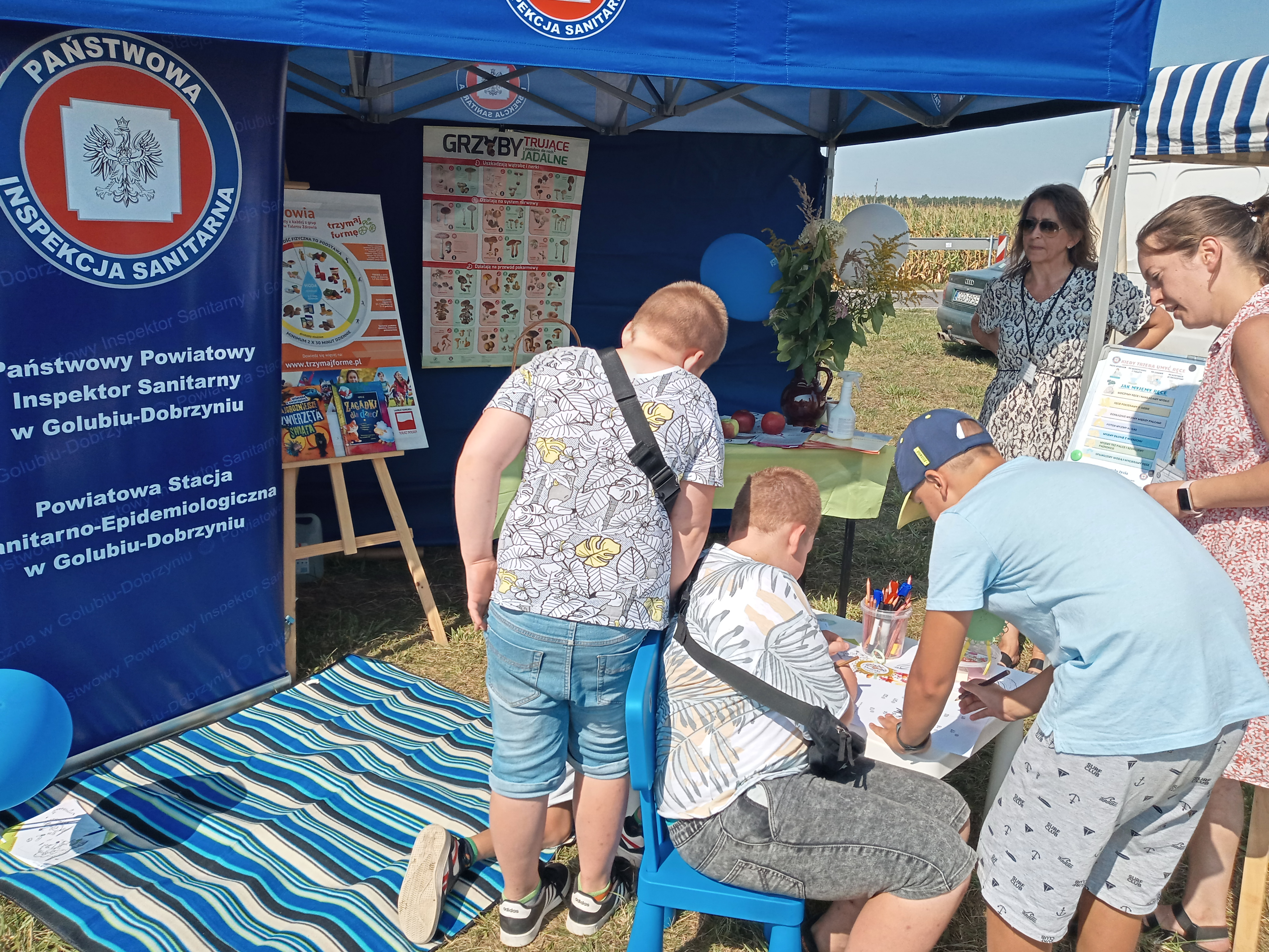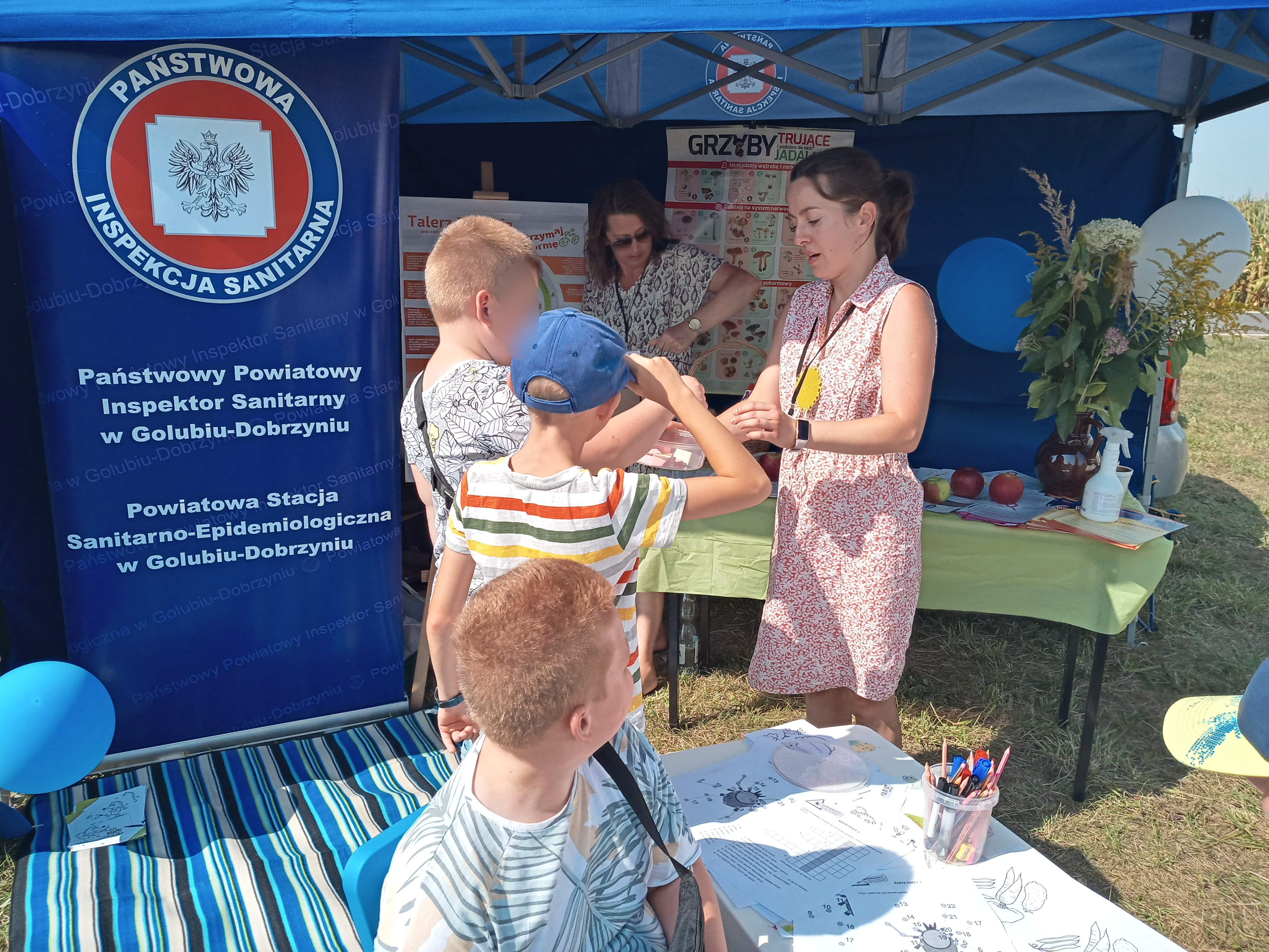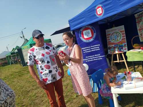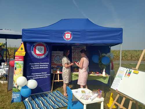 W miniony weekend w miejscowości Nowawieś gm. Golub-Dobrzyń odbyły się Dożynki Gminno-Parafialne, gdzie swoje stoisko miała także Powiatowa Stacja Sanitarno- Epidemiologiczna w Golubia-Dobrzynia. Była to okazja do przeprowadzenia działań profilaktycznych wśród uczestników dożynek. Najmłodsi uczestnicy dożynek chętnie rozwiązywali zagadki, związane z higieną oraz utrwalały technikę prawidłowego mycia rąk. Zajęcia praktyczne z użyciem alkogogli, symulujących stan nietrzeźwości uświadomiły wielu, że spożywanie alkoholu obniża koncentrację i precyzję wykonywanych ruchów, spowalnia czas reakcji na bodźce oraz zaburza ocenę odległości. Osoby zainteresowane mogły skorzystać z badania zawartości tlenku węgla w wydychanym powietrzu za pomocą specjalistycznego sprzętu, jakim jest smokerlyzer, a także korzystali z szerokiej oferty materiałów informacyjno-edukacyjnych.