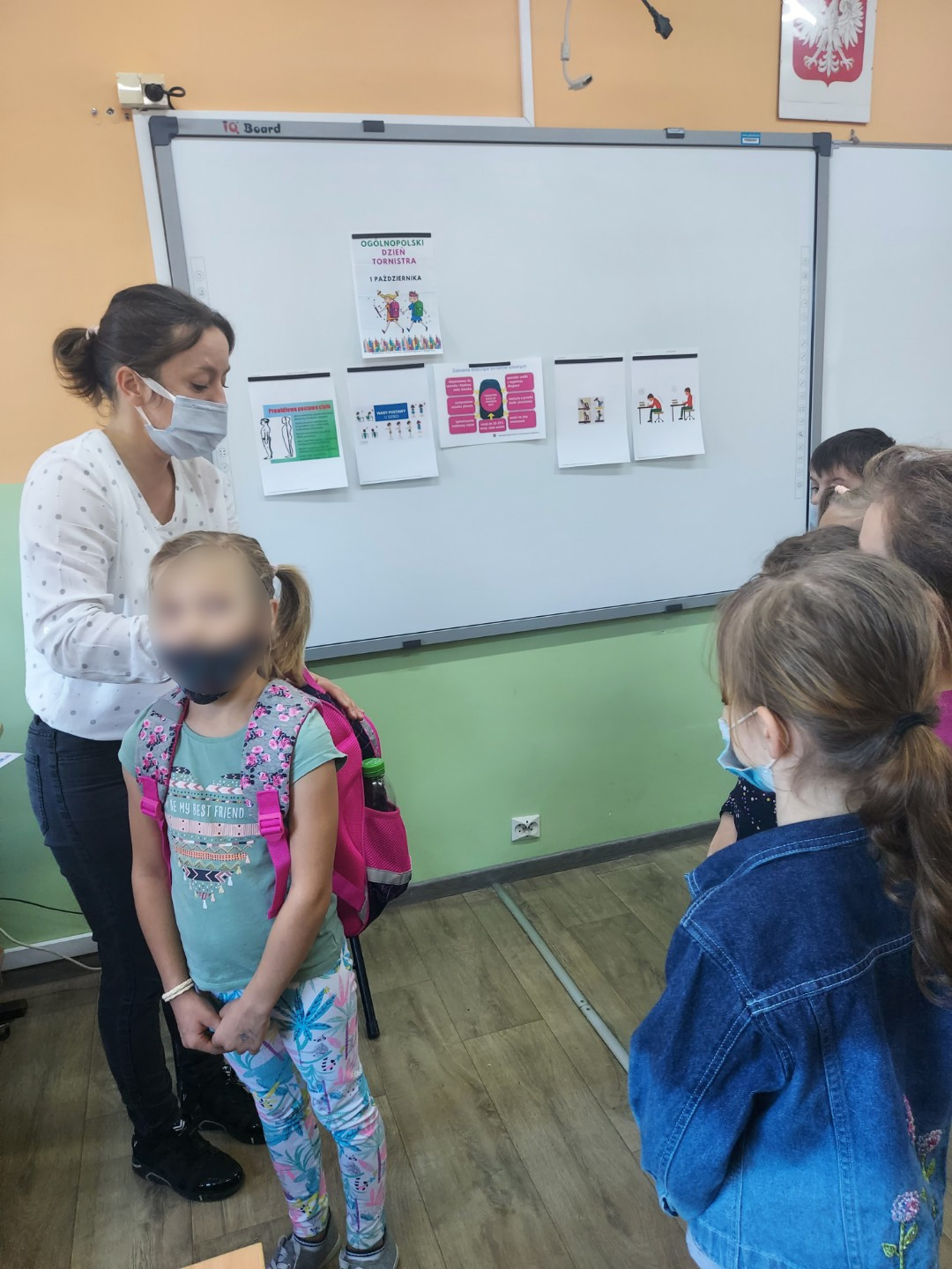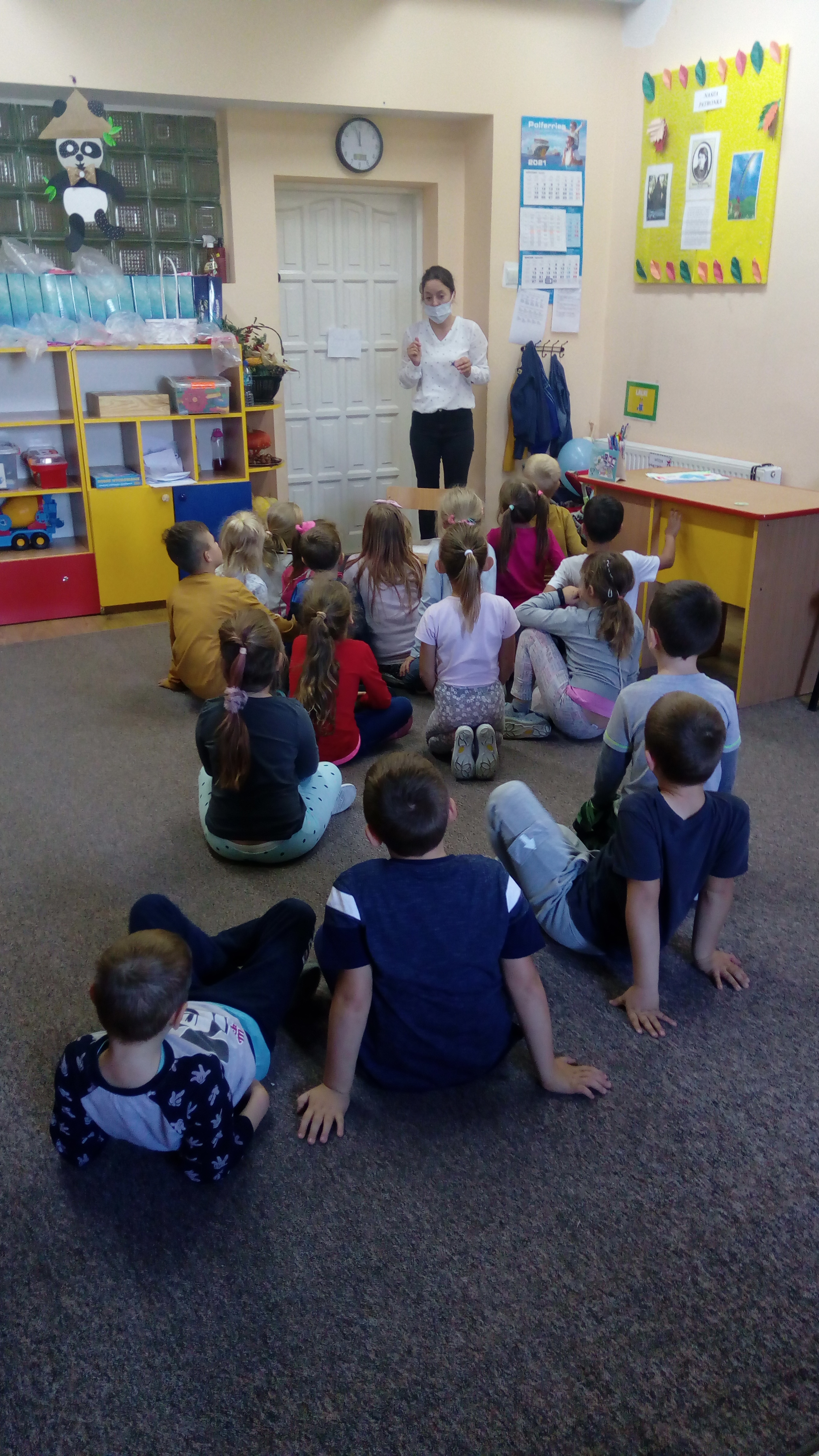 Dzieci z dwóch klas 1 ćwiczyły utrzymanie prawidłowej postawy ciała, poznały podstawowe wady postawy oraz zalecenia dotyczące plecaka szkolnego. Utrwaliły także nawyk prawidłowego siedzenia przy biurku. Kolejnym tematem realizowanym przez pierwszoklasistów w październiku były zagadnienia związane z jesienią i bezpiecznym grzybobraniem. Dzieci wiedzą, w jaki sposób powinny być ubrane wybierając się do lasu. Znają także podstawowe zasady grzybobrania.