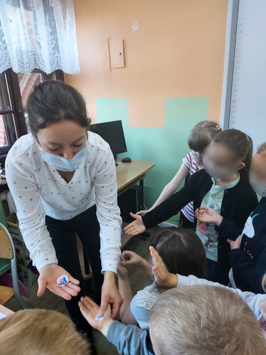 Młodsze dzieci z dwóch oddziałów „0” z naszego miasta poznały ogólne zasady profilaktyki grypy i przeziębienia. Ćwiczyły kichanie w zgięcie łokcia. Dowiedziały się, jak przenoszą się wirusy na dłoniach, w jakich sytuacjach należy myć ręce i jak należy to prawidłowo robić.