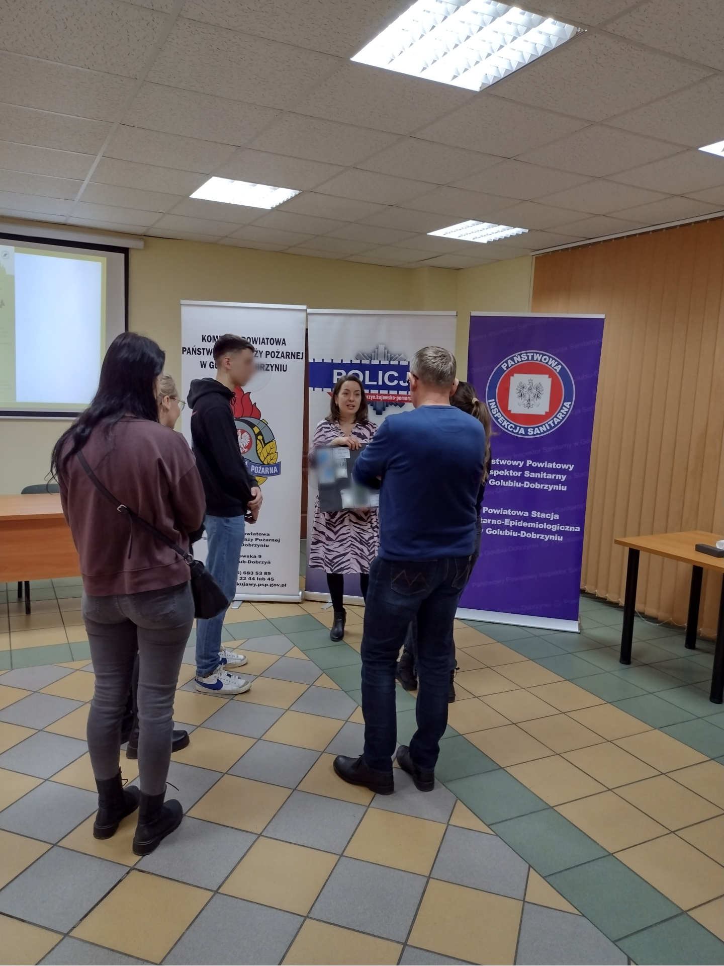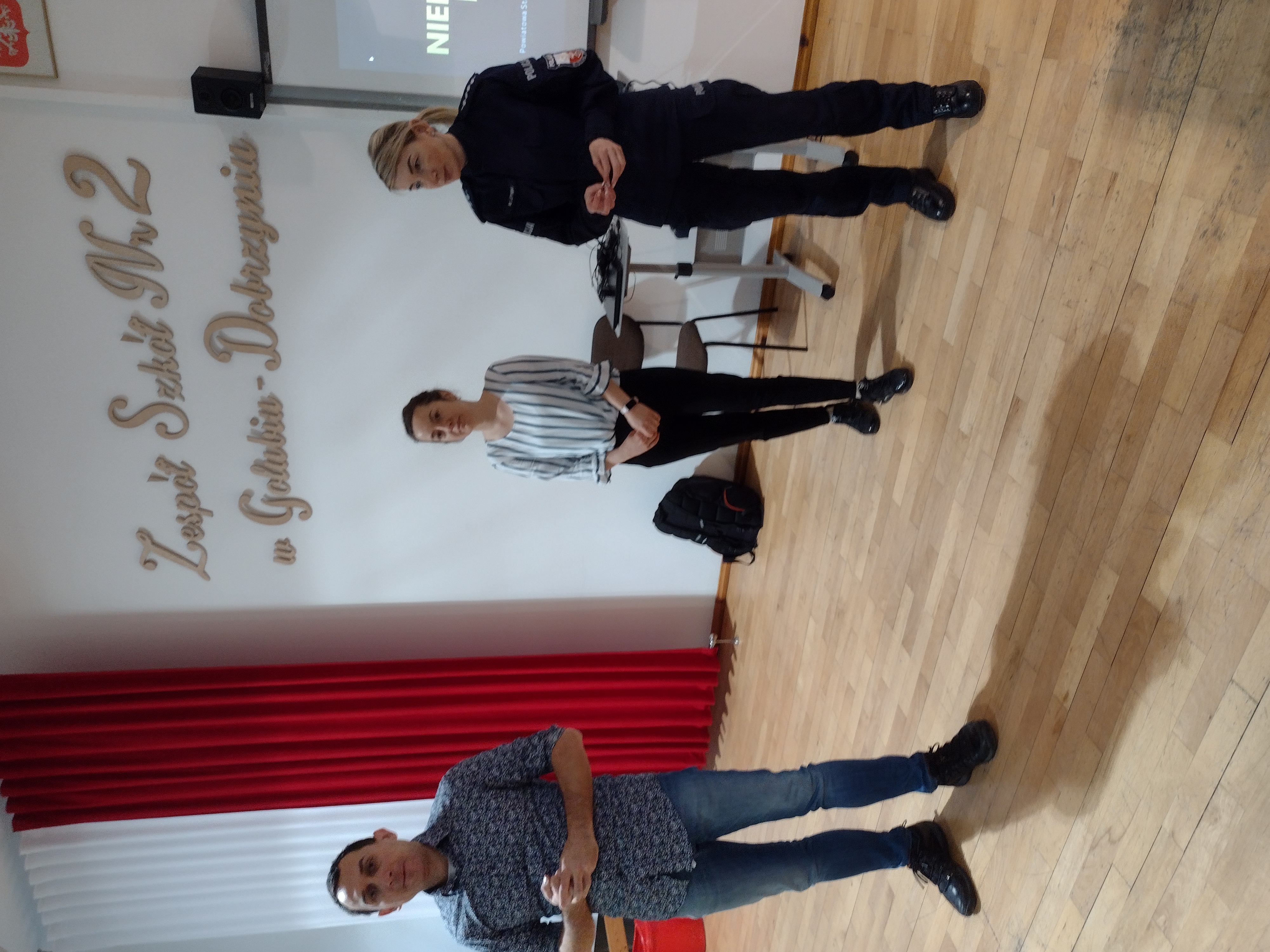 We współpracy z Komendą Powiatową Państwowej Straży Pożarnej, Komendą Powiatową Policji oraz Nadleśnictwem Golub - Dobrzyń uczestniczyliśmy w akcji Bezpieczne ferie, która odbyła się w siedzibie PSP w Golubiu- Dobrzyniu. Młodszym dzieciom zwracaliśmy uwagę na staranną higienę dłoni, przypomnieliśmy, jak powinna wyglądać prawidłowa higiena rąk. Wytłumaczyliśmy jak przenoszą się wirusy oraz jak możemy się przed nimi chronić. Wspomnieliśmy także o roli zdrowego odżywiania i aktywnego spędzania czasu wolnego. Ze starszymi uczestnikami spotkania dyskutowaliśmy o szkodliwości substancji psychoaktywnych oraz napoi energetyzujących. Podczas rozmowy prezentowana była ekspozycja prezentująca zawartość cukru w energetykach o różnych objętościach z przeliczeniem na kcal. Uczestnicy spotkania mieli także możliwość przymierzenia alkogogli.