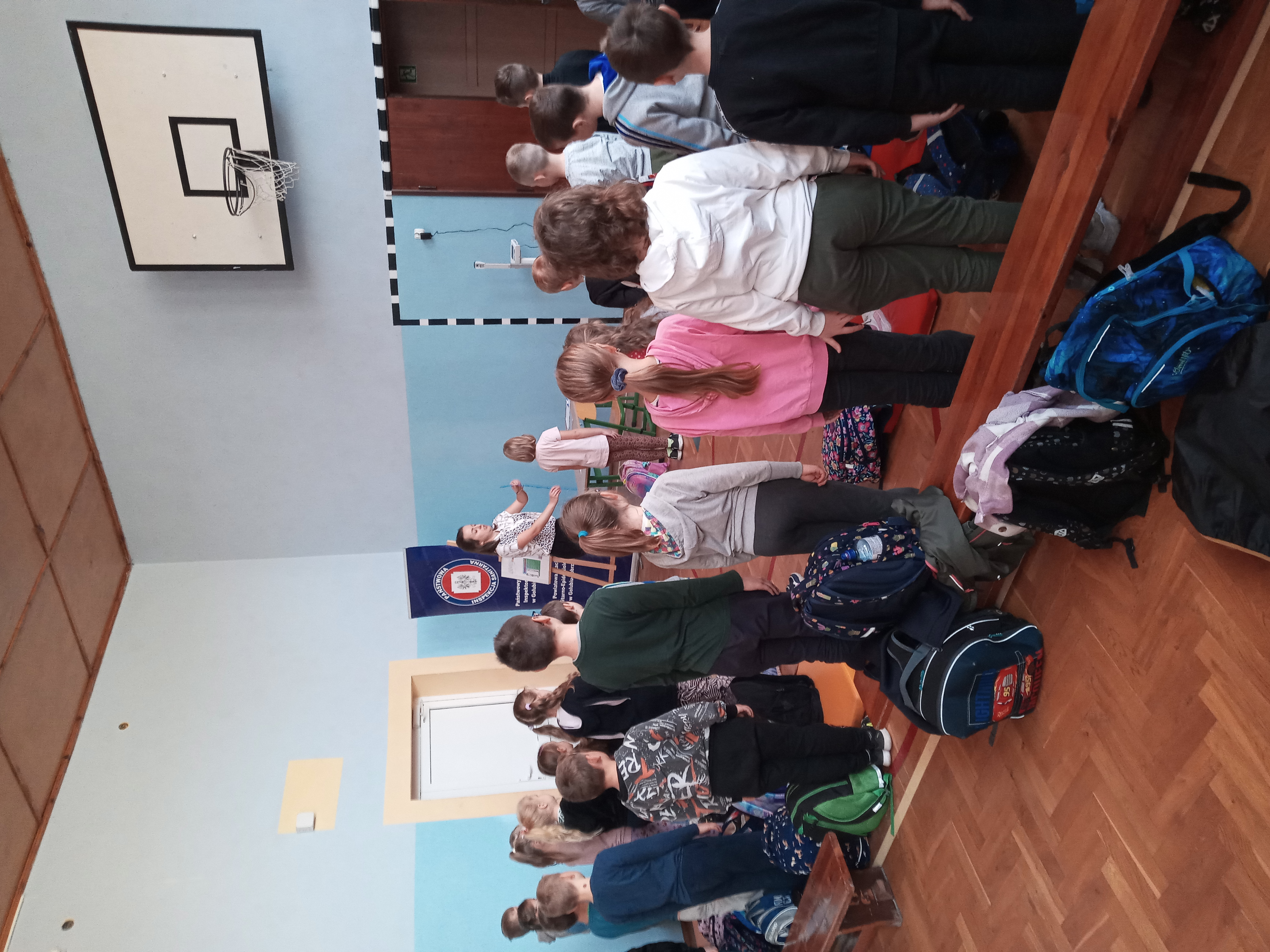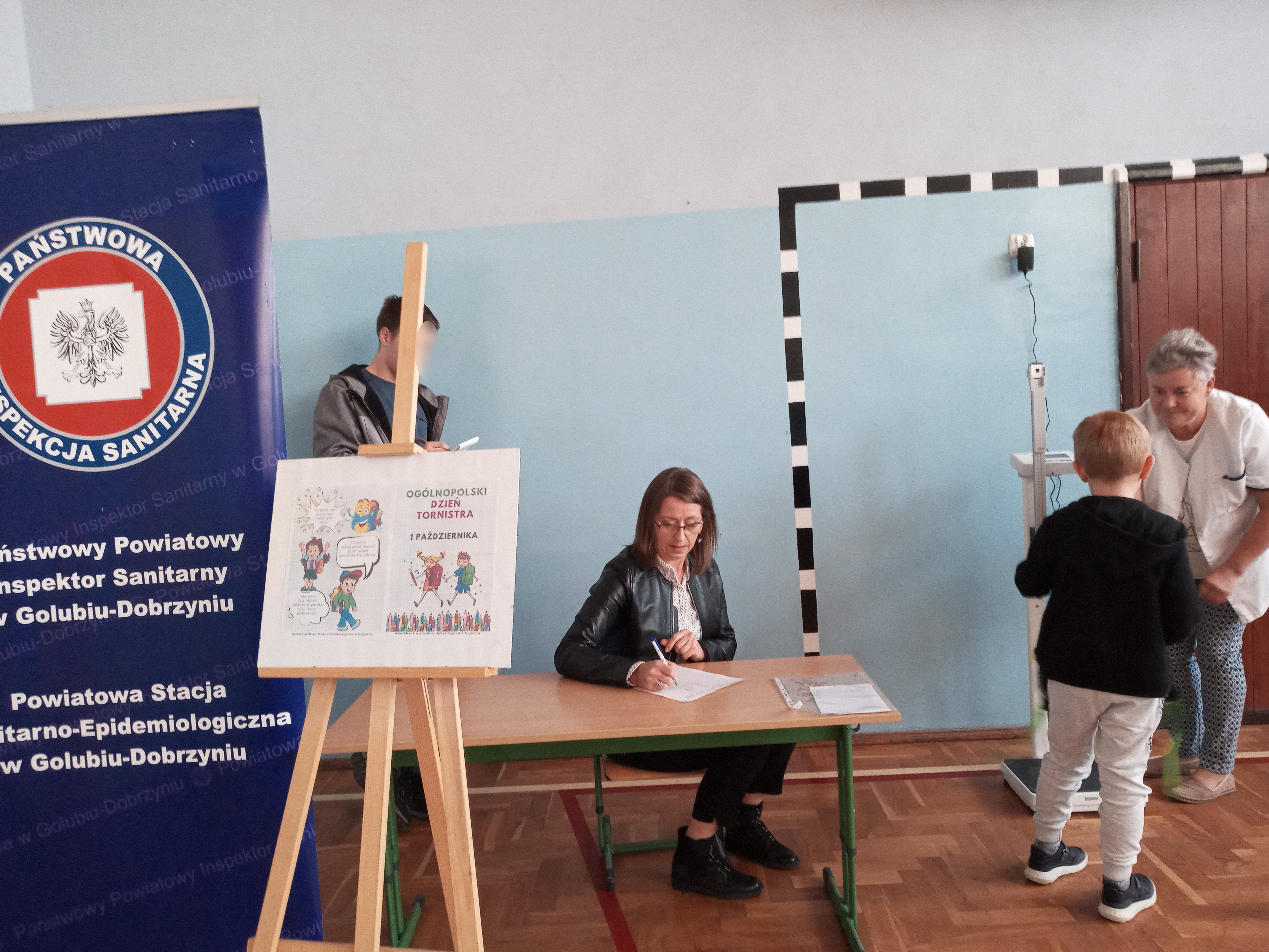 Wszystkie dzieci z klas 1-3 wzięły udział w badaniu obciążenia ciała ciężarem tornistrów. Pomiarów dokonali pracownicy Powiatowej Stacji Sanitarno- Epidemiologicznej w Golubiu- Dobrzyniu przy współudziale pielęgniarki szkolnej. W wyniku kontroli stwierdzono, że ciężar tornistra w większości przypadków był dostosowany do obowiązującej normy. Pomiary zostały zakończone prelekcją dotyczącą utrzymania prawidłowej postawy ciała w pozycji siedzącej oraz stojącej. Poinformowano uczniów, że niewłaściwy sposób noszenia tornistra oraz jego zbyt duży ciężar może zaburzyć prawidłowy rozwój kręgosłupa.