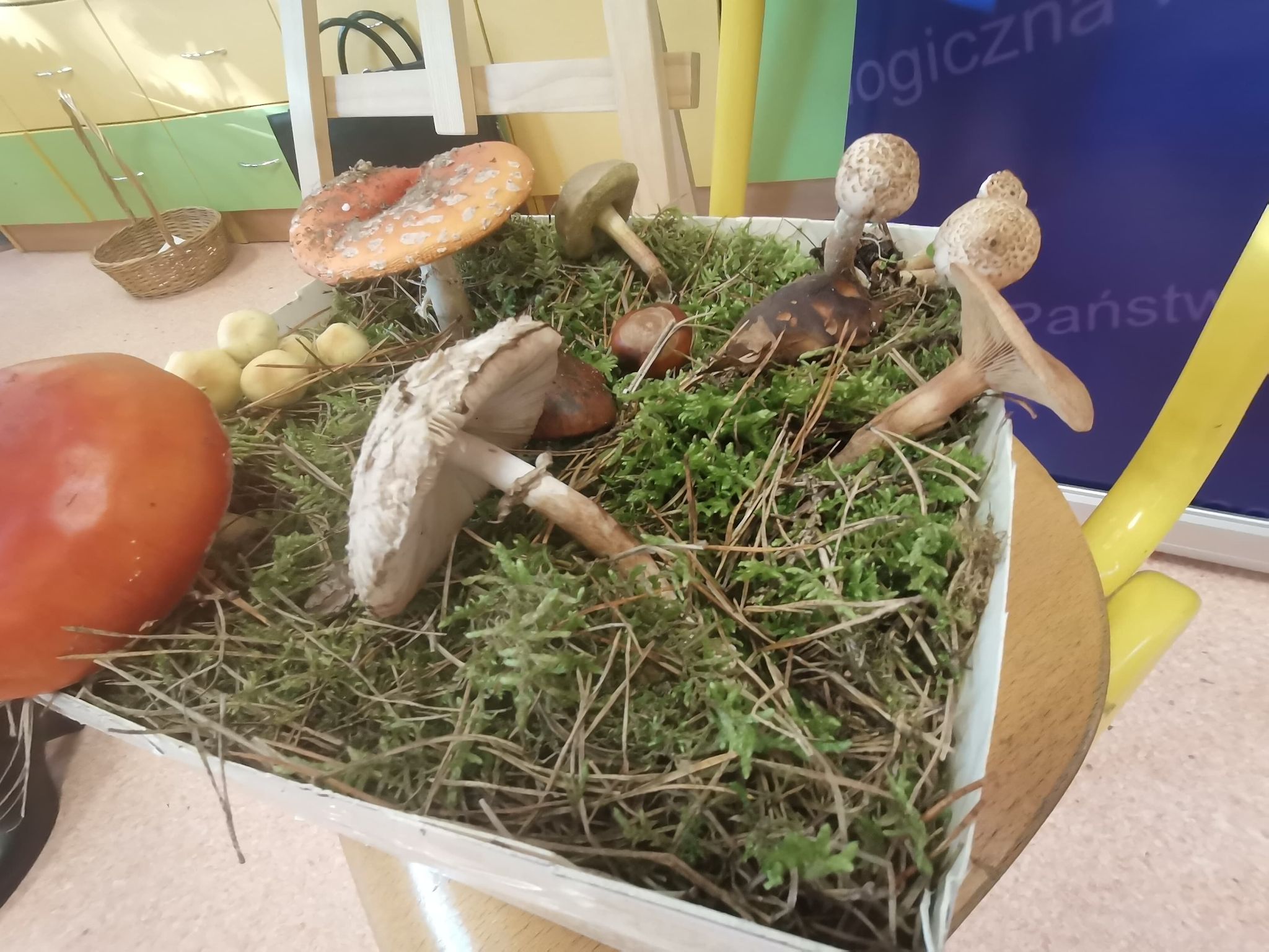 Kolejnym tematem realizowanym przez dzieci z grupy „Motyle Cytrynki” były zagadnienia związane z jesienią i bezpiecznym grzybobraniem. Do prelekcji wykorzystano gatunki grzybów świeżych, najczęściej spotykanych: