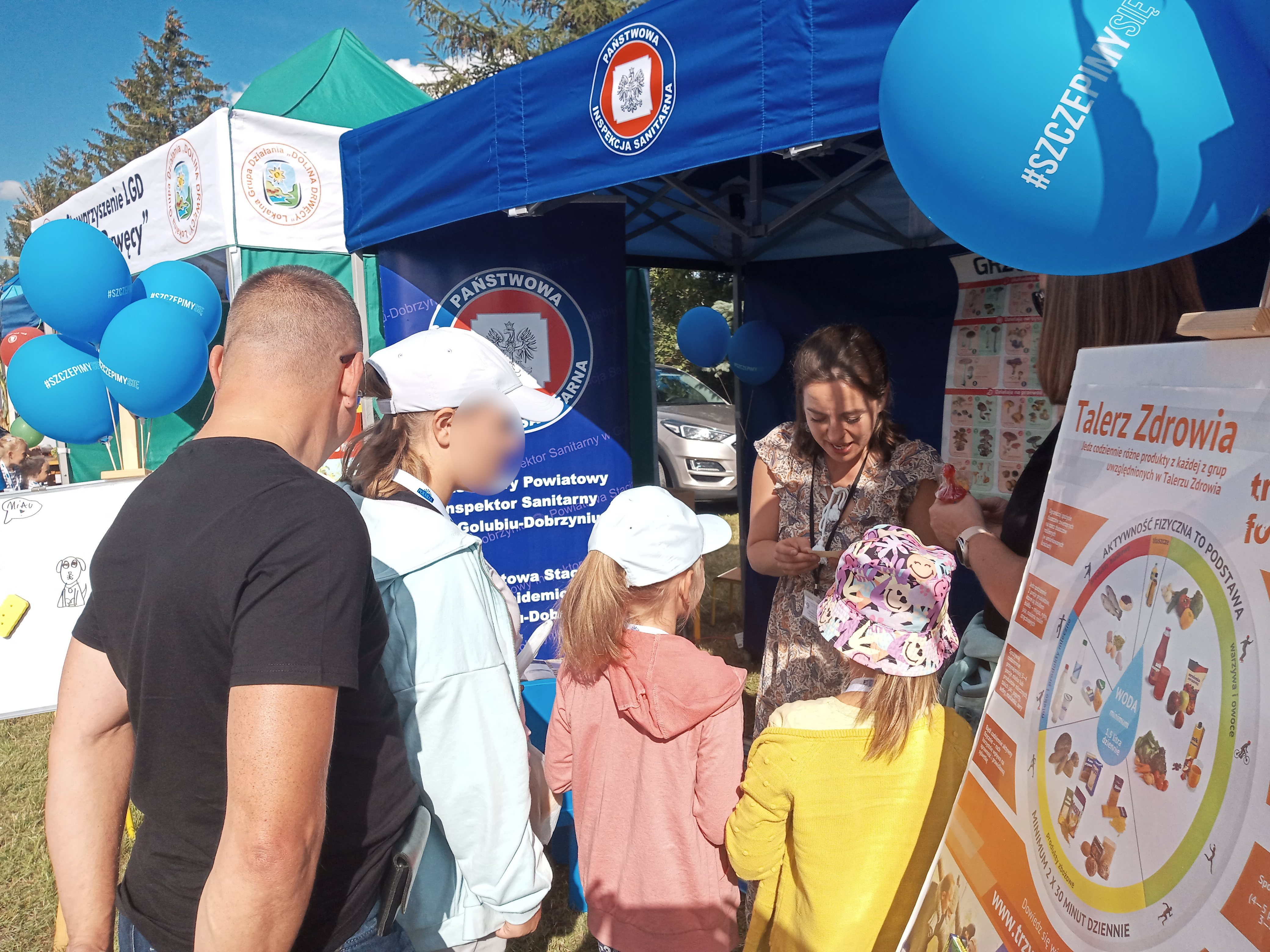 Najmłodsi chętnie rozwiązywali zagadki związane z higieną oraz utrwalali technikę prawidłowego mycia rąk. Dla starszych dzieci pracownicy Powiatowej Stacji Sanitarno-Epidemiologicznej w Golubiu-Dobrzyniu przygotowali zabawy edukacyjne związane z chorobami odkleszczowymi. Zajęcia praktyczne z użyciem alkogogli symulujących stan nietrzeźwości uświadomiły wielu, że spożywanie alkoholu obniża koncentrację i precyzję wykonywanych ruchów, spowalnia czas reakcji na bodźce oraz zaburza ocenę odległości. Osoby zainteresowane mogły skorzystać z szerokiej oferty materiałów informacyjno - edukacyjnych oraz dokonać pomiaru zawartości tlenku węgla w wydychanym powietrzu za pomocą specjalistycznego sprzętu, jakim jest smokerlyzer.