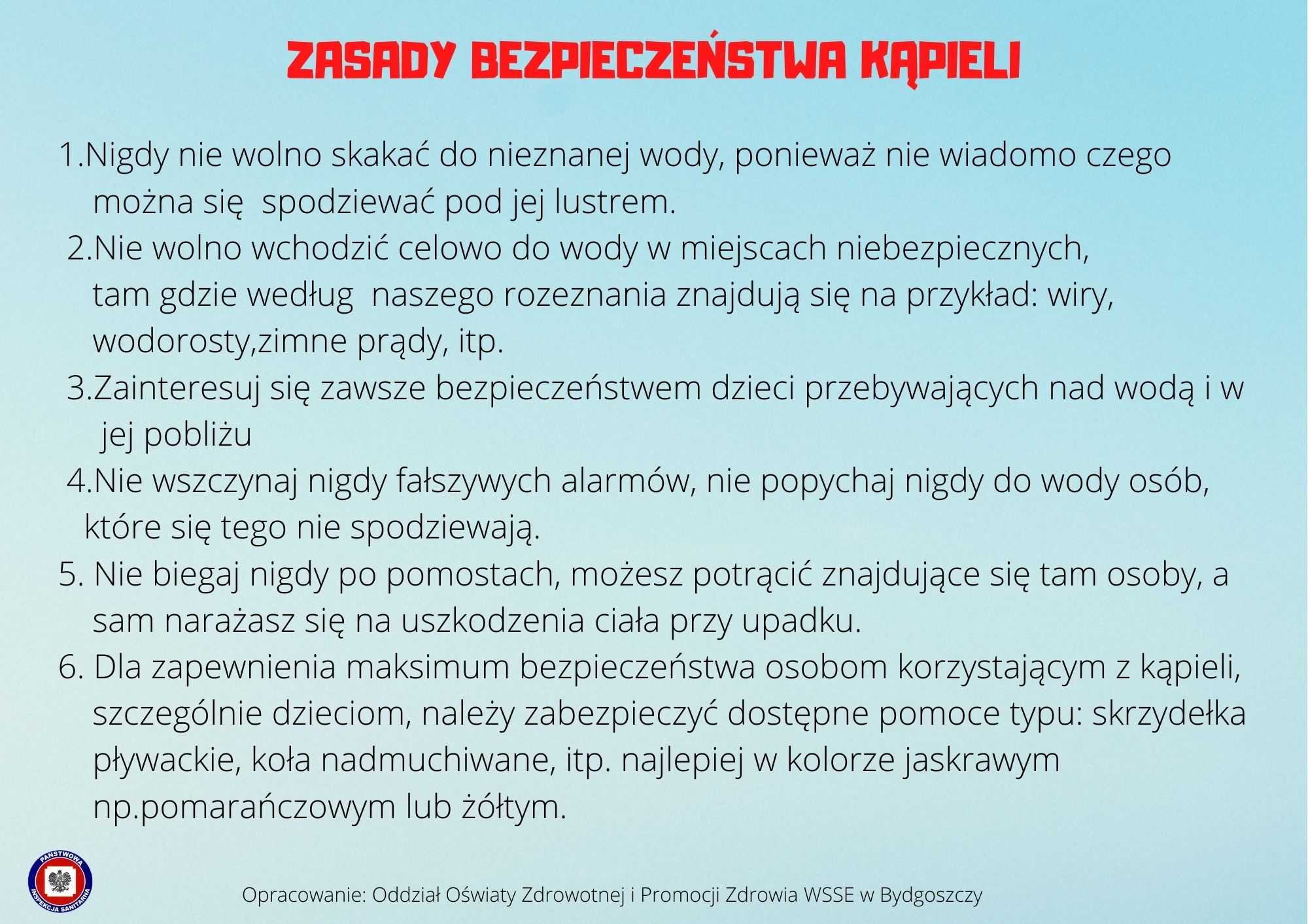 - Nie wszczynaj fałszywych alarmów, nie popychaj do wody osób, które się tego nie spodziewają.