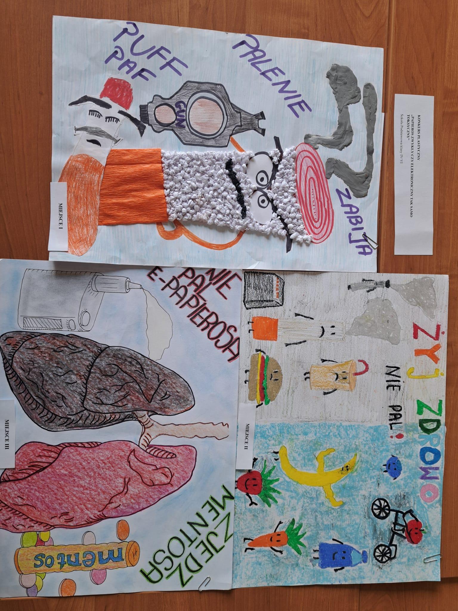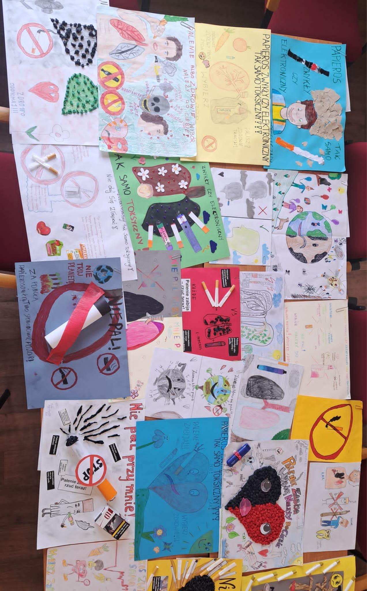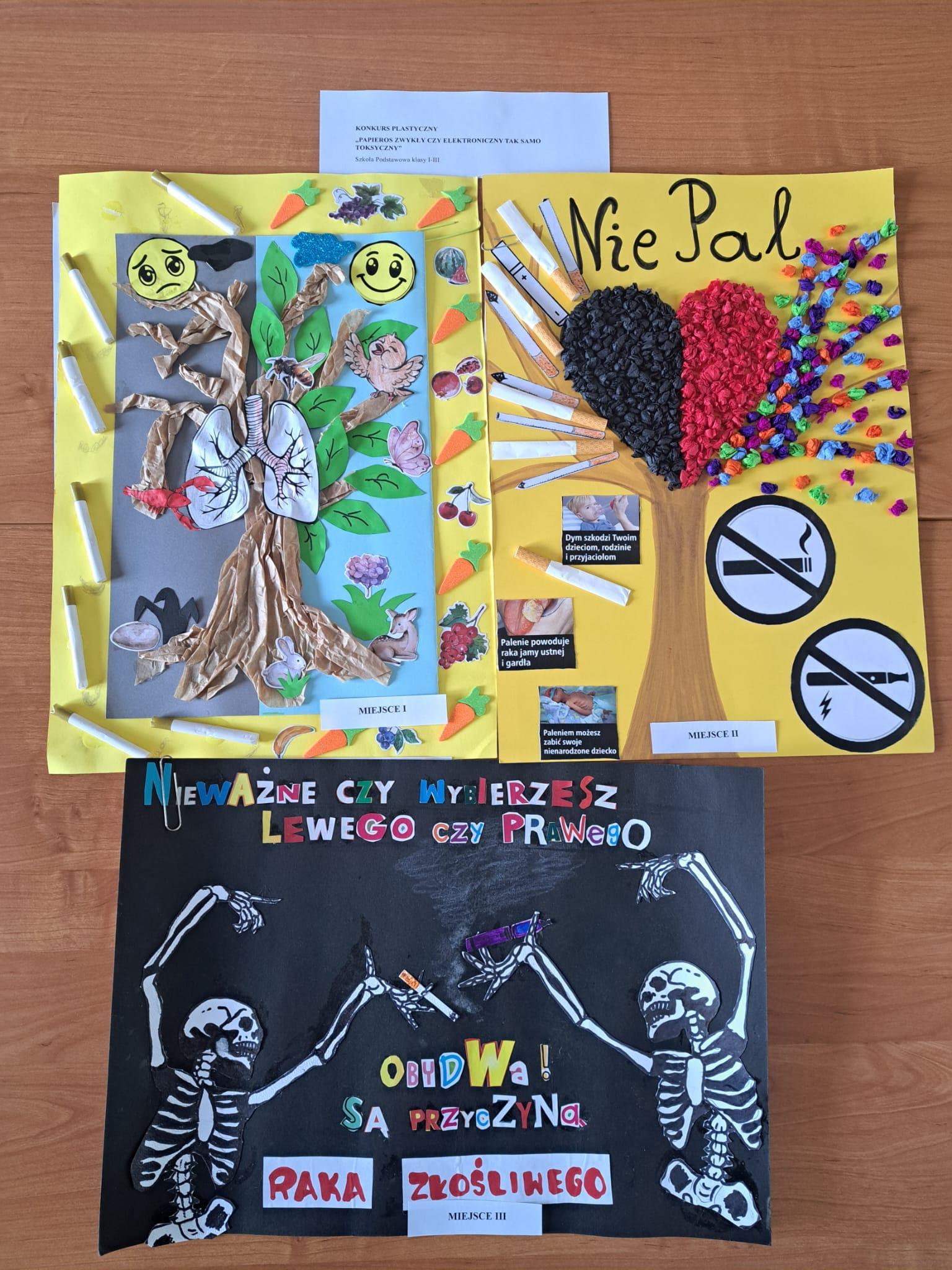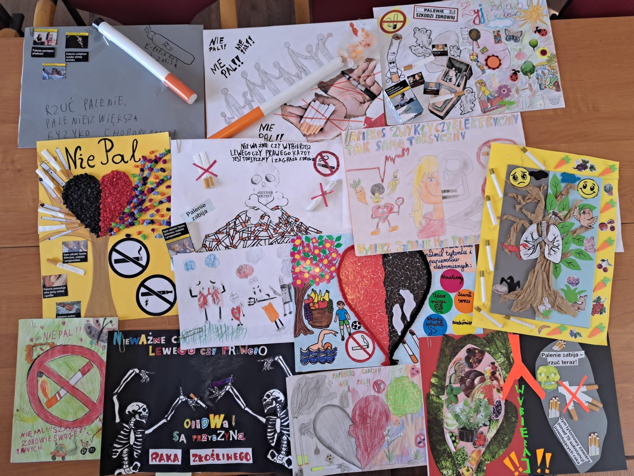 Rozstrzygnięcia etapu powiatowego konkursu plastycznego pod hasłem „Papieros zwykły czy elektroniczny tak samo toksyczny”