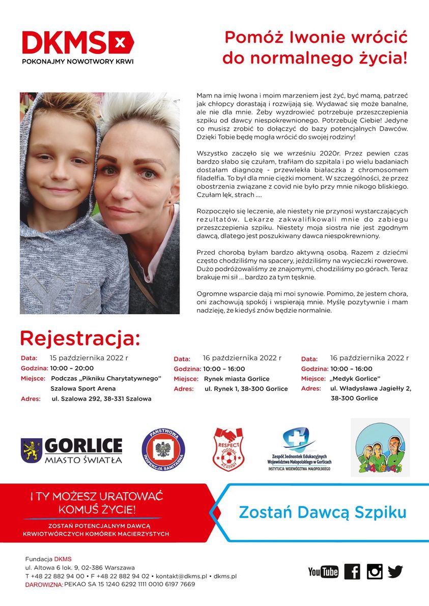 Zarejestruj się i pomóż uratować życie Iwony i innych! Serdecznie zapraszamy!