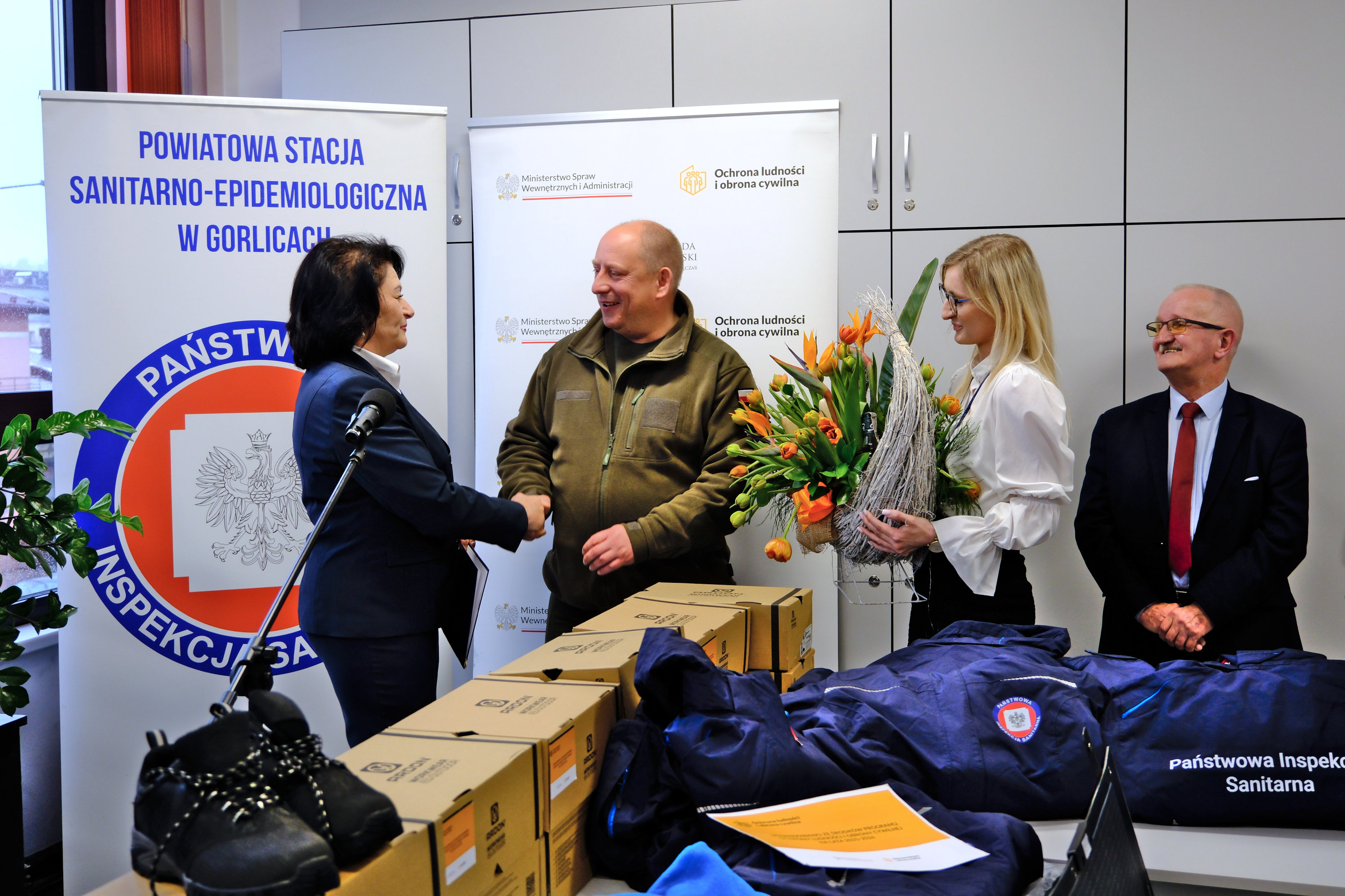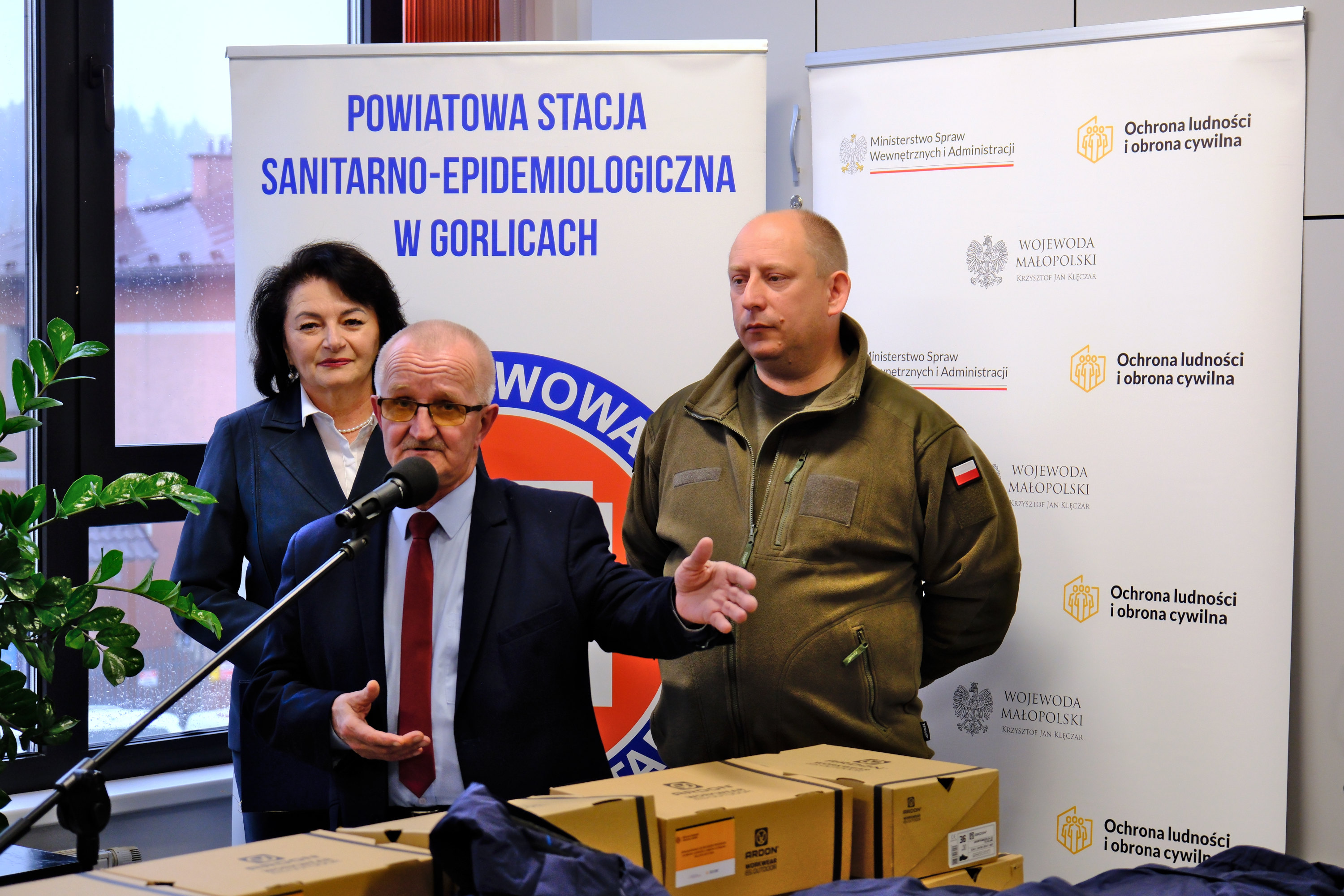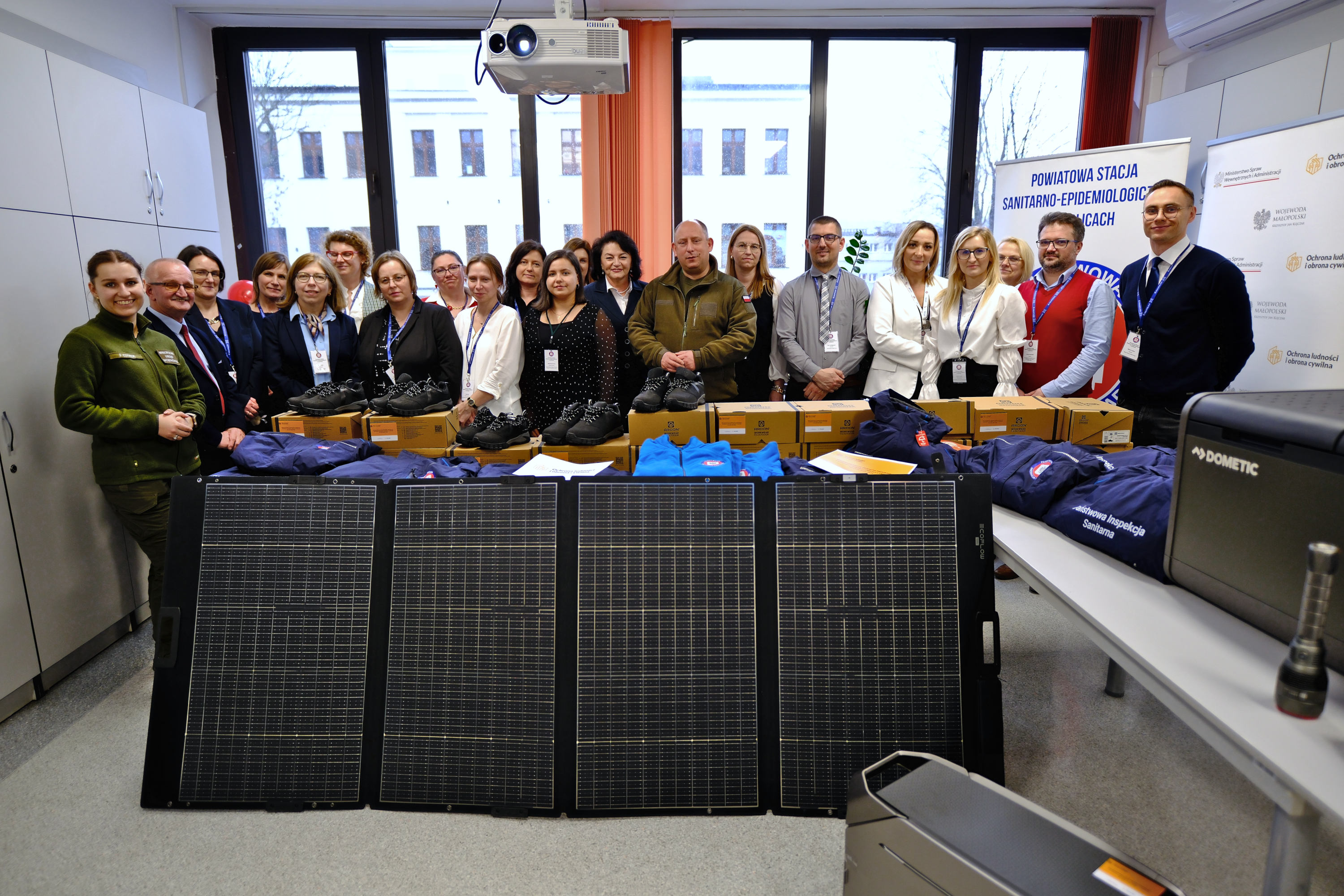 Podczas wizyty nastąpiło przekazanie nowoczesnego sprzętu, który znacząco wzmocni nasze możliwości reagowania w sytuacjach kryzysowych oraz podniesie poziom bezpieczeństwa mieszkańców. Łączna kwota dofinansowania wyniosła 97 655,23. Z tych środków zakupiliśmy: odzież ochronną, bank energii z panelem fotowoltaicznym, lodówkę transportową do przechowywania preparatów szczepionkowych, 2 szt. ups-ów do chłodni, urządzenie monitoringu temperatury w chłodniach do przechowywania szczepionek oraz latarki. Pracownicy Powiatowej Stacji Sanitarno-Epidemiologicznej w Gorlicach uczestniczyli także w szkoleniu z zakresu ochrony ludności i obrony cywilnej.