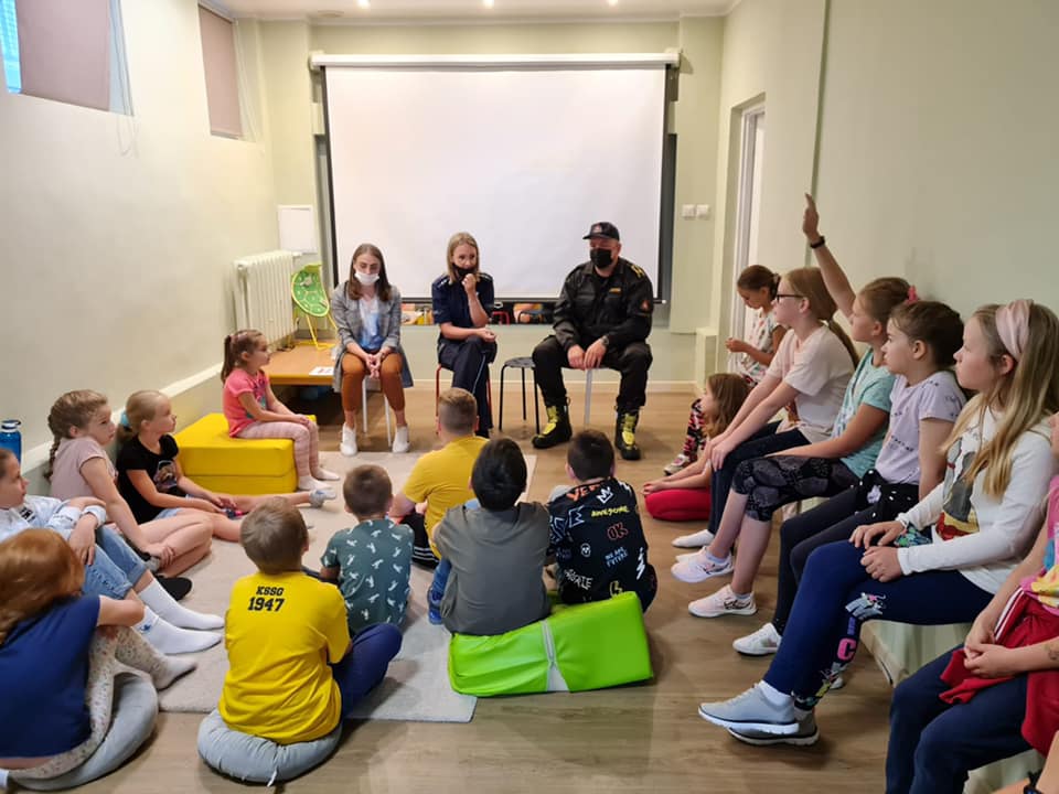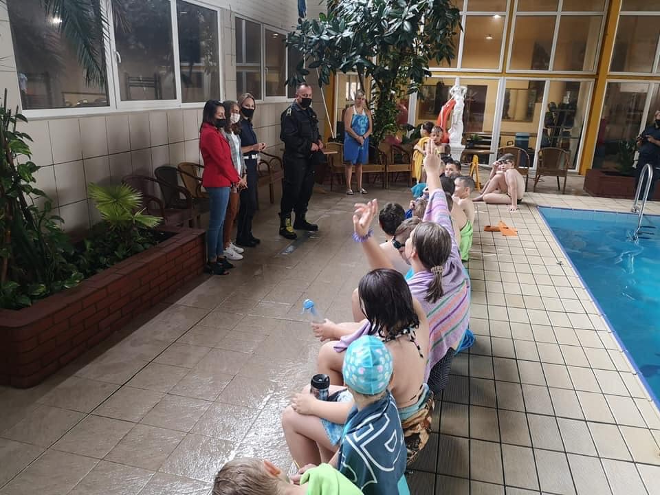 Jednocześnie , przy tej okazji , dla najmłodszych uczestników letniego wypoczynku przeprowadzono zajęcia edukacyjne z zakresu promocji zdrowia , spędzania bezpiecznych wakacji, w tym odpowiedzialnego zachowania.![]()