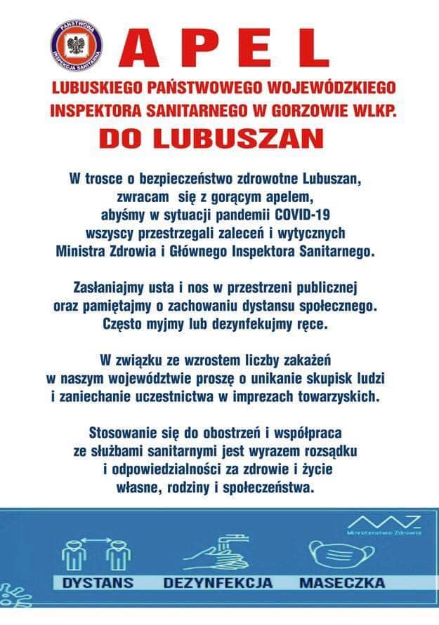 Apel Lubuskiego Państwowego Wojewódzkiego Inspektora Sanitarnego w Gorzowie Wlkp. Zdjęcia (1) Pokaż zdjęcie 1 z galerii.