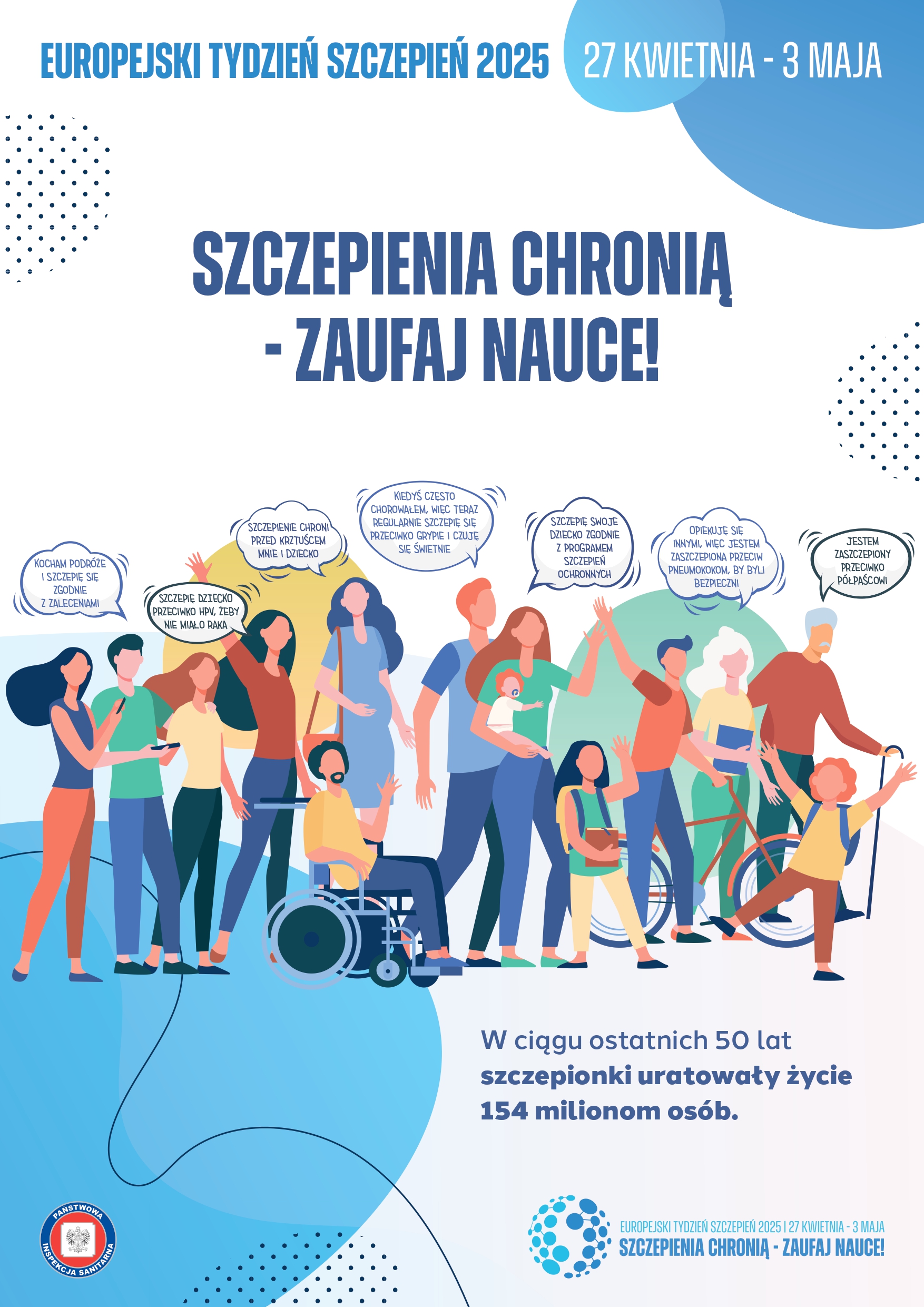 W dniach od 27 kwietnia do 3 maja 2025 roku obchodzony jest Europejski Tydzień Szczepień pod hasłem „Szczepienia chronią – zaufaj nauce!”. Jest to inicjatywa Światowej Organizacji Zdrowia (WHO) mająca na celu zwiększenie świadomości społeczeństwa na temat roli szczepień w zapobieganiu chorobom i ochronie zdrowia indywidulanego i zbiorowego.