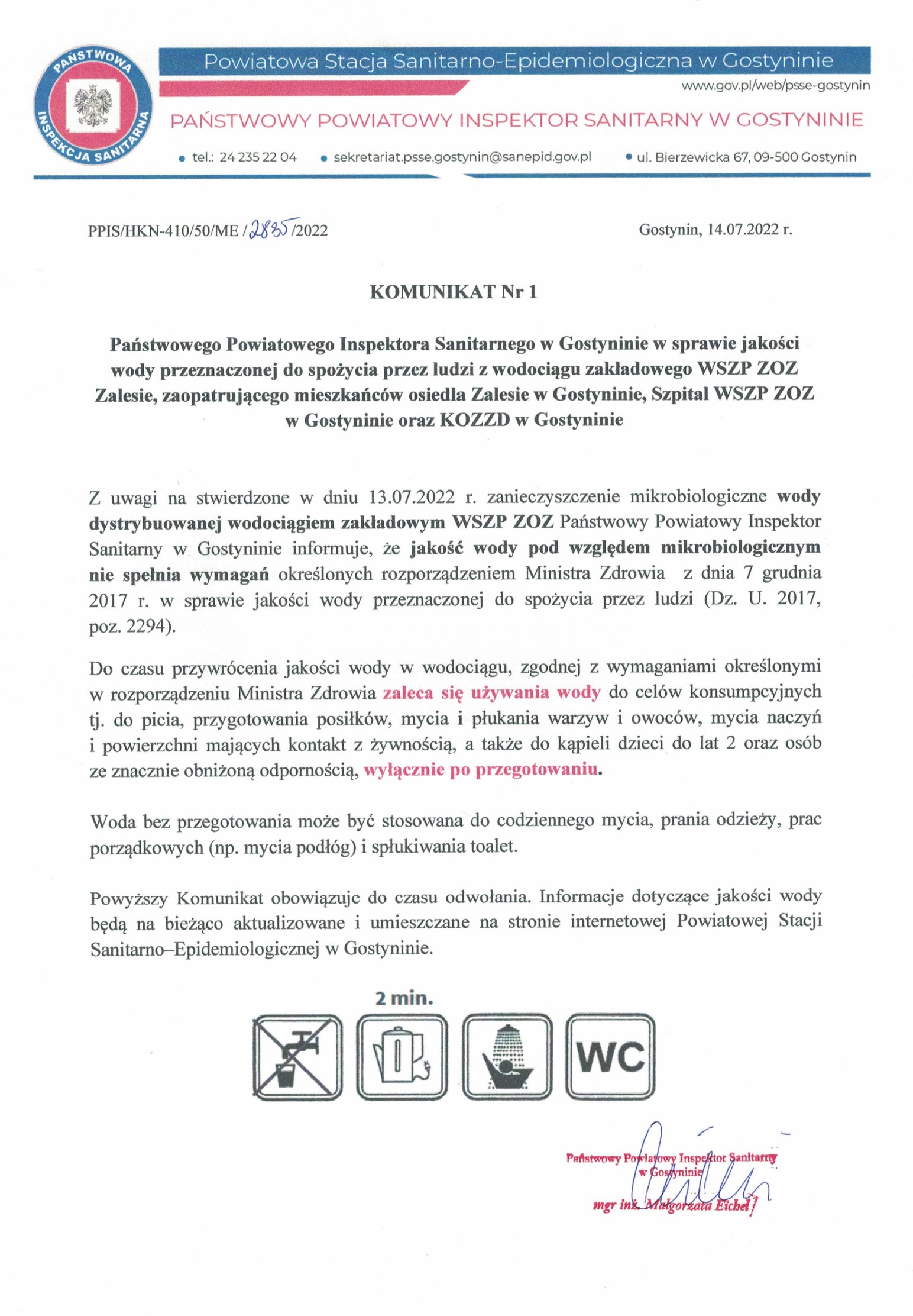 Komunikat Nr 1 w sprawie jakości wody przeznaczonej do spożycia przez ludzi z wodociągu zakładowego WSZPZOZ Zalesie Materiały Komunikat nr 1_2022 Komunikat_nr_1_2022.jpg 0.58MB
