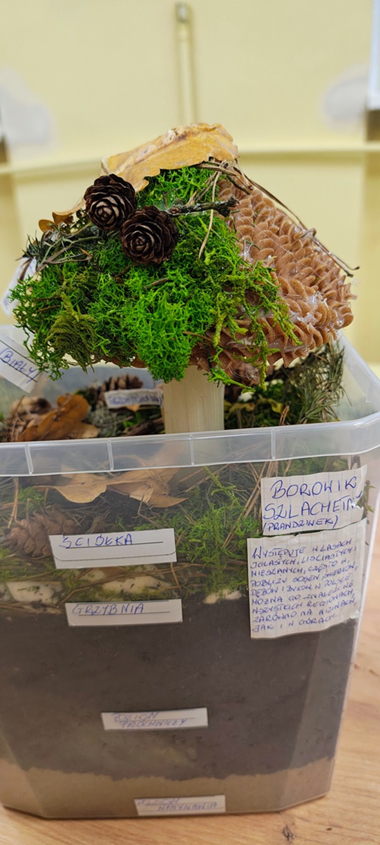 Przedmiotem naszego Konkursu było stworzenie przez ucznia modelu przestrzennego wybranego gatunku grzyba (lub grzybów) z uwzględnieniem elementów podłoża na jakim rosną grzyby.