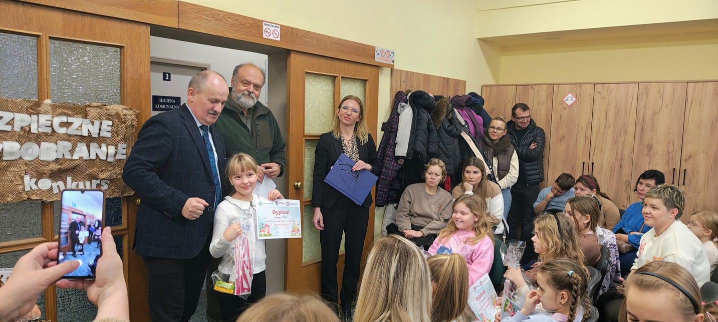 Alicji Wilińskiej uczennicy klasy IIb Szkoły Podstawowej nr 1 im. Armii Krajowej w Gostyninie, Szkolny Koordynator konkursu Pani Mariola Matuszewska – Wyróżnienie Nadleśniczego,