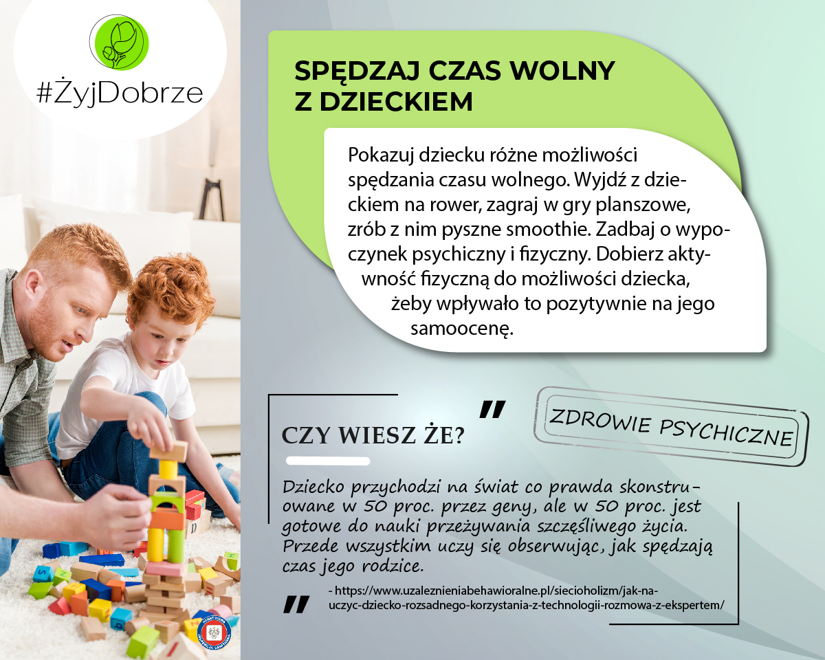 Naturalnie w budowaniu naszej kondycji psychicznej pomocni są inni ludzie, stanowiący nasze wsparcie społeczne, przy czym bardziej efektywne są więzi oparte na kontaktach osobistych, a nie relacjach przy pomocy mediów społecznościowych. Spędzajmy czas z tymi, których lubimy, zapewnijmy sobie dobre relacje z innymi, bądźmy na bieżąco w kontakcie z najbliższymi. Rozmawiajmy o naszych obawach i emocjach z osobami, które darzymy zaufaniem. Unikajmy tych, którzy nas obciążają i ranią, wybierajmy osoby, które naprawdę potrafią nas wysłuchać i zrozumieć, które z pewnością pomogą nam #ŻyćDobrze.