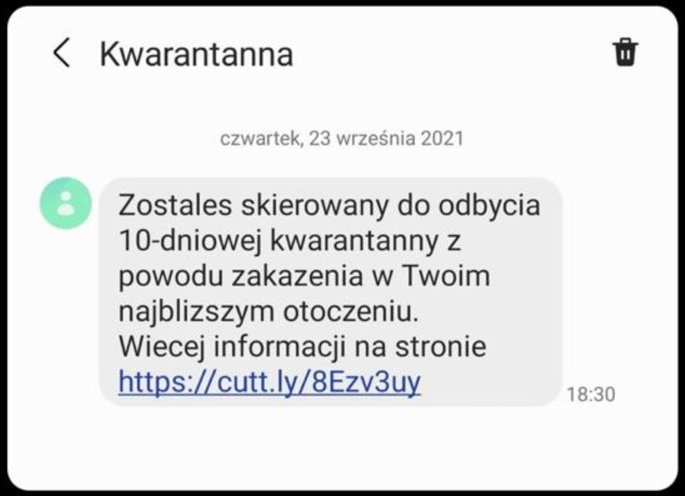 Państwowy Powiatowy Inspektor Sanitarny w Grodzisku Wielkopolskim ostrzega przed fałszywymi SMS-ami od nadawcy Kwarantanna. Jest to próba wyłudzenia danych osobowych. Prosimy nie otwierać linku wskazanego w wiadomości. Inspekcja sanitarna nigdy nie wysyłała, ani nie wysyła wiadomości z przekierowaniem do stron.