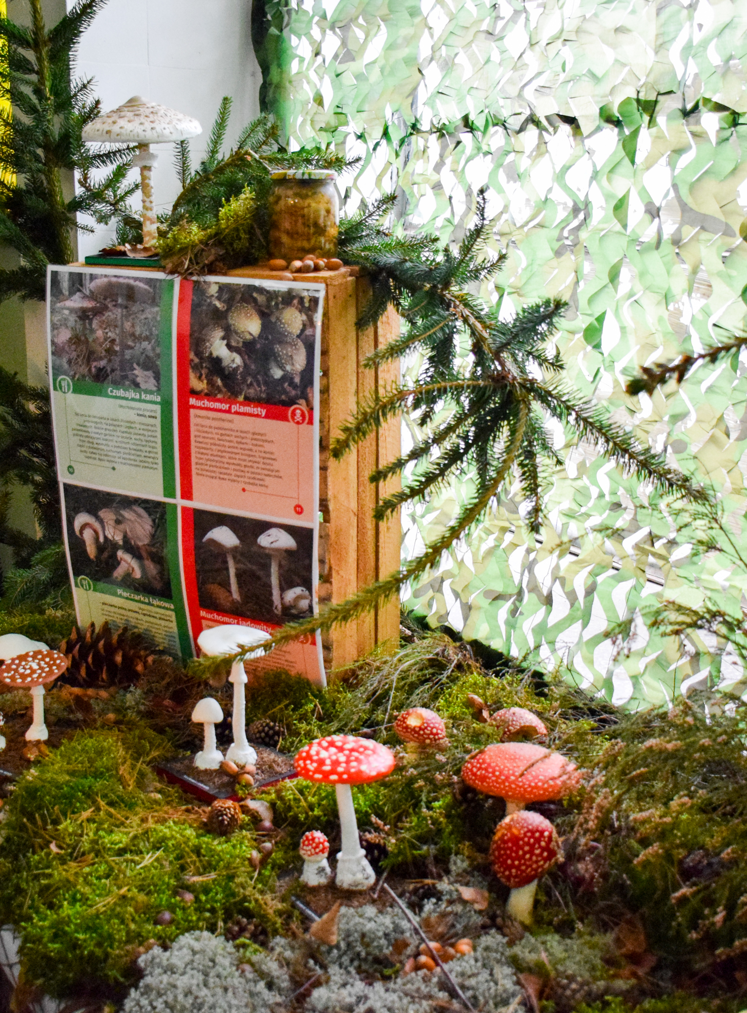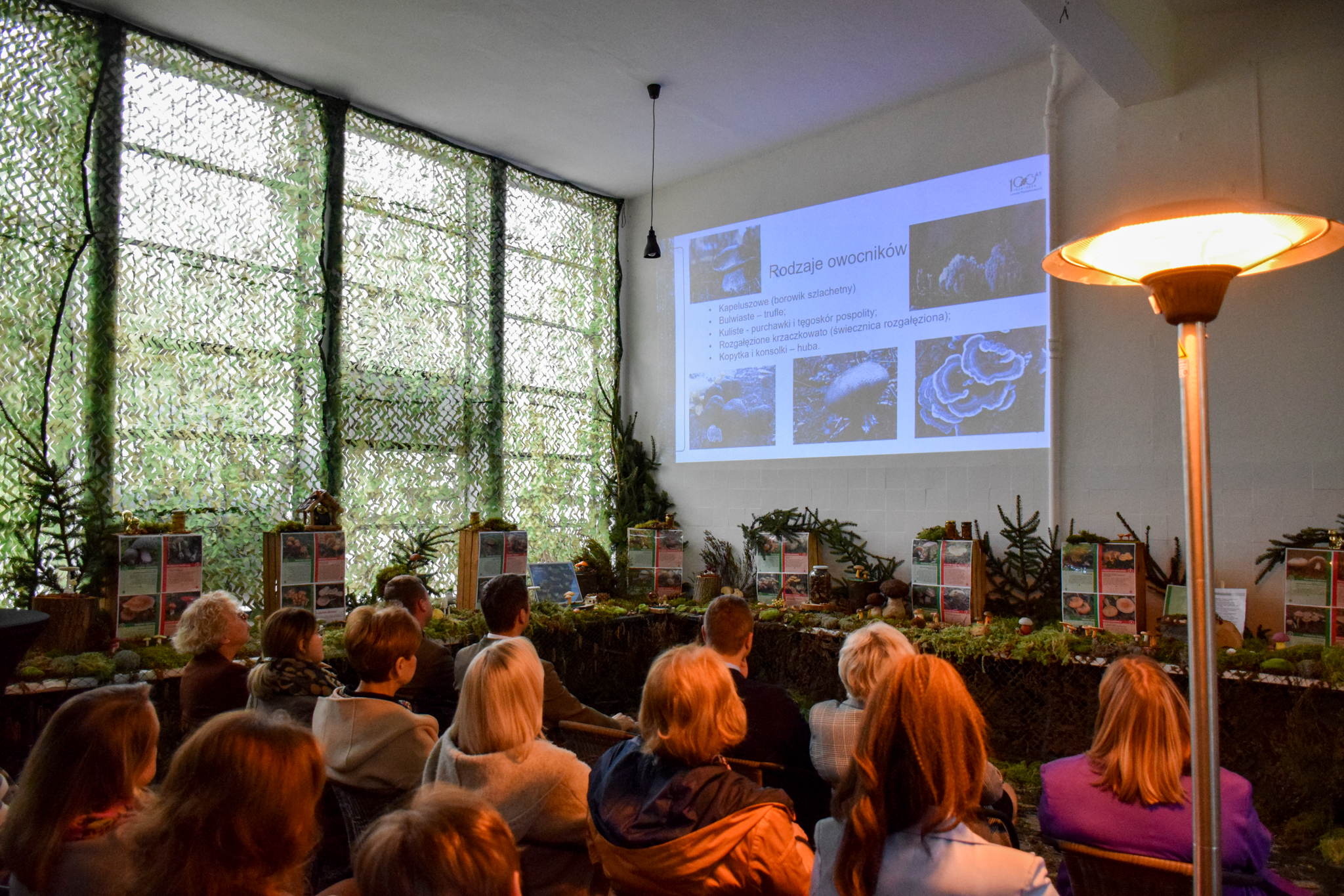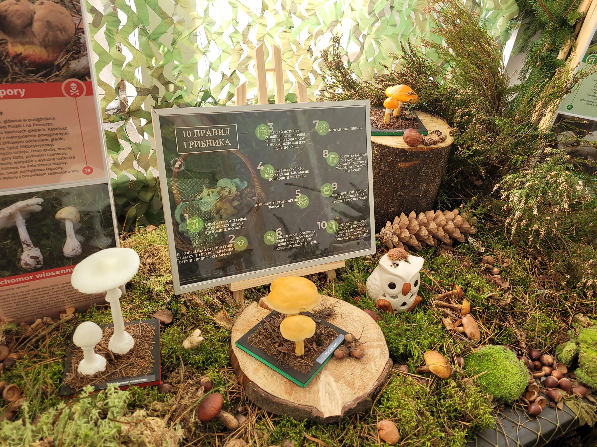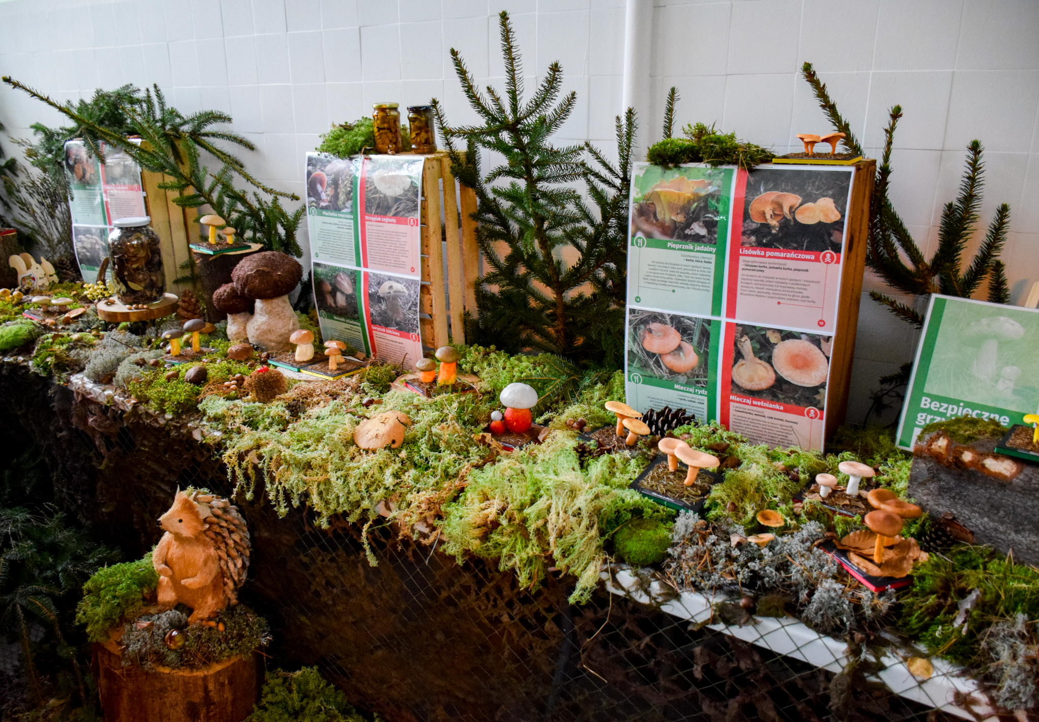 Na wystawie zgromadziliśmy bardzo realistycznie wyglądające modele grzybów oraz grzyby świeże, co w tym roku było nie lada wyzwaniem. Mieliśmy również grzyby marynowane i suszone, których zapach poznawały najmłodsze dzieci. Film, mnóstwo ciekawostek o grzybach, leśnym życiu, zwierzętach oraz wzajemnych leśnych powiązaniach, przedstawione w scenerii pachnącego lasu, robiło naprawdę duże wrażenie na odwiedzających.