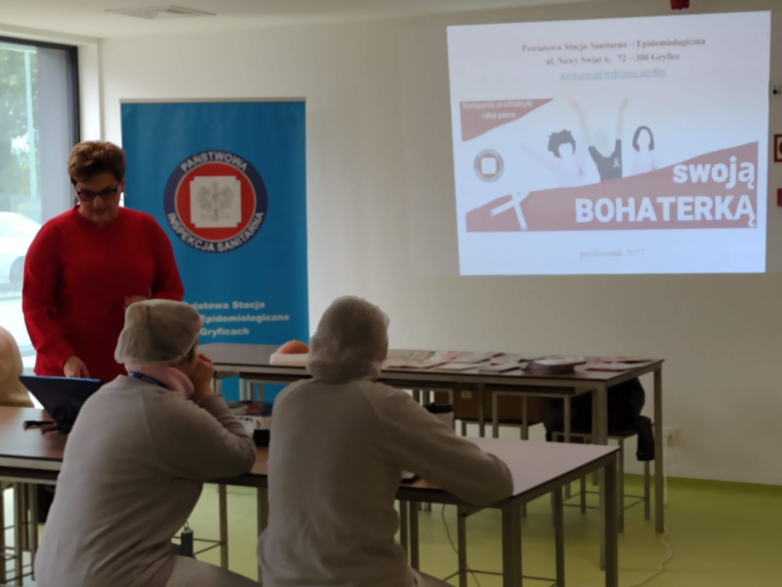 W dniu 12 października 2022 r. w ramach wojewódzkiej kampanii „Bądź swoją bohaterką” odbyło się spotkanie z pracownikami zakładu pracy Kapitan Navi w Trzebiatowie w ramach profilaktyki raka piersi.
