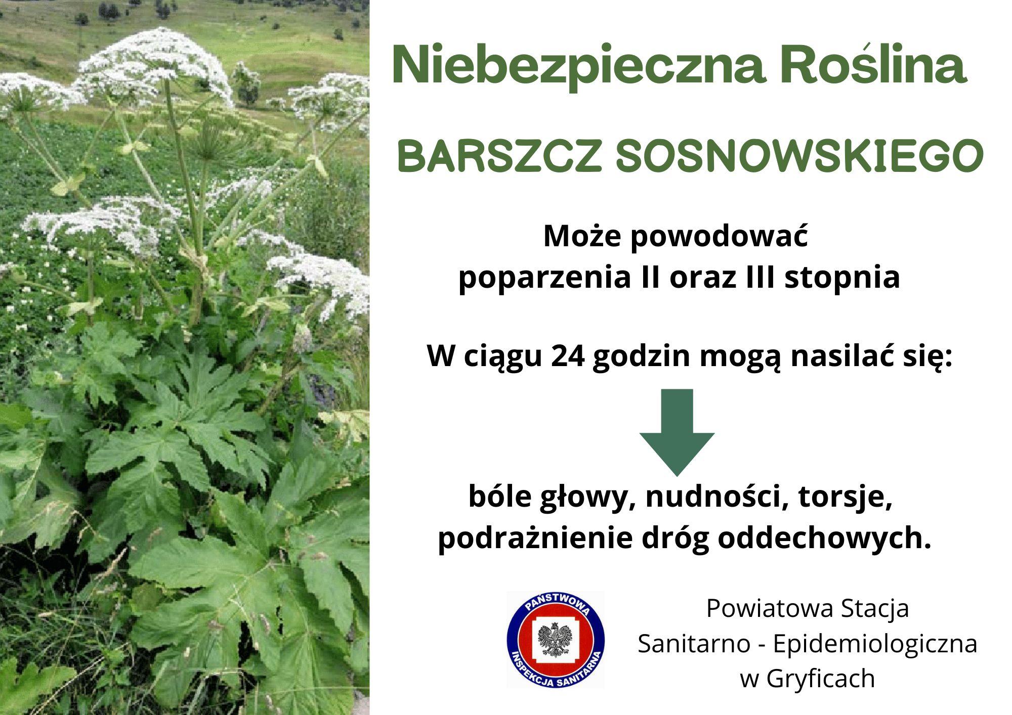 Sok i olejki eteryczne barszczu Sosnowskiego zawierają toksyczne substancje (furanokumaryny). Pod wpływem promieniowania słonecznego wywołują one zmiany skórne, które przypominają oparzenie – zaczerwienienie, wysypkę, owrzodzenie czy opuchlizna. Objawy występują od kilku do kilkunastu godzin po kontakcie. Mogą wystąpić również: nudności, wymioty, bóle głowy, obrażenia układu oddechowego i oczu, wstrząs anafilaktyczny. Wytwarzane przez roślinę toksyczne związki mogą także wpływać na powstawanie nowotworów skóry.