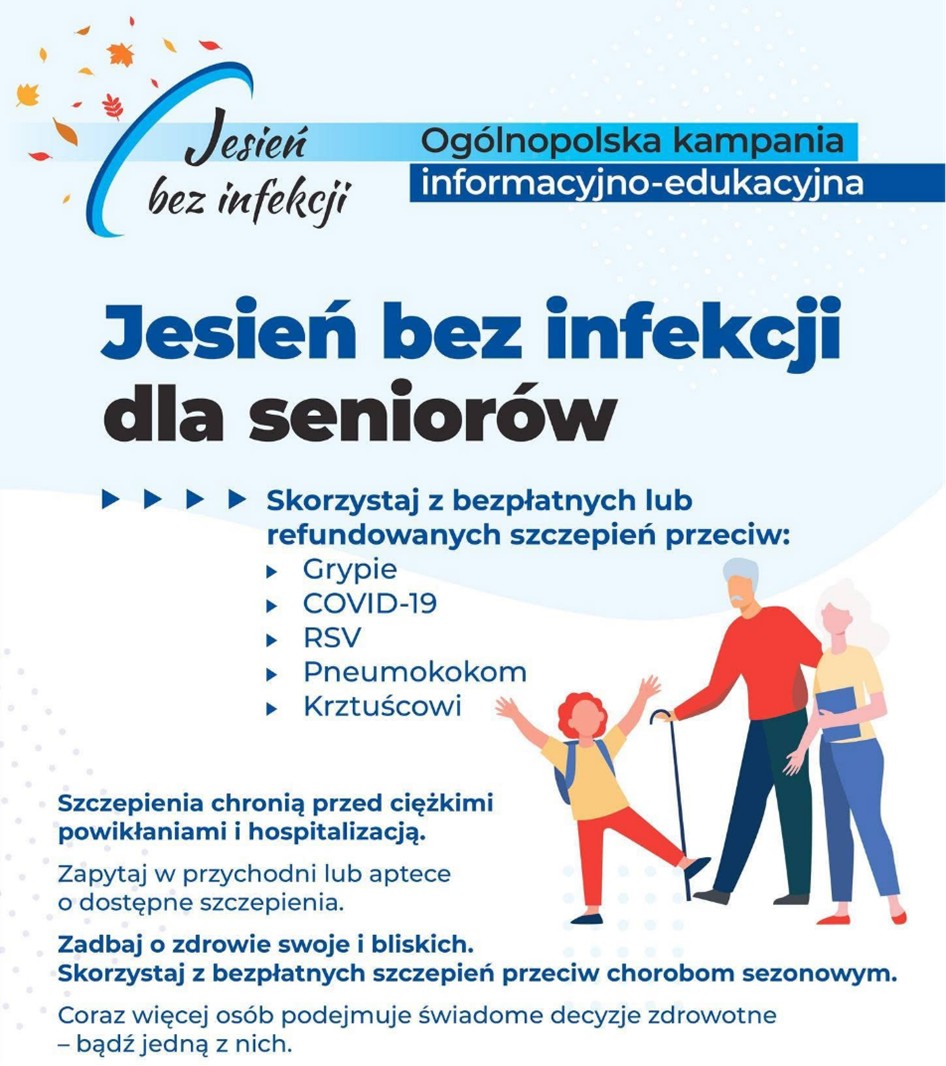 Jeszcze przed sezonem jesienno-zimowym zaleca się, aby seniorzy skorzystali z bezpłatnych lub refundowanych szczepień przeciwko: