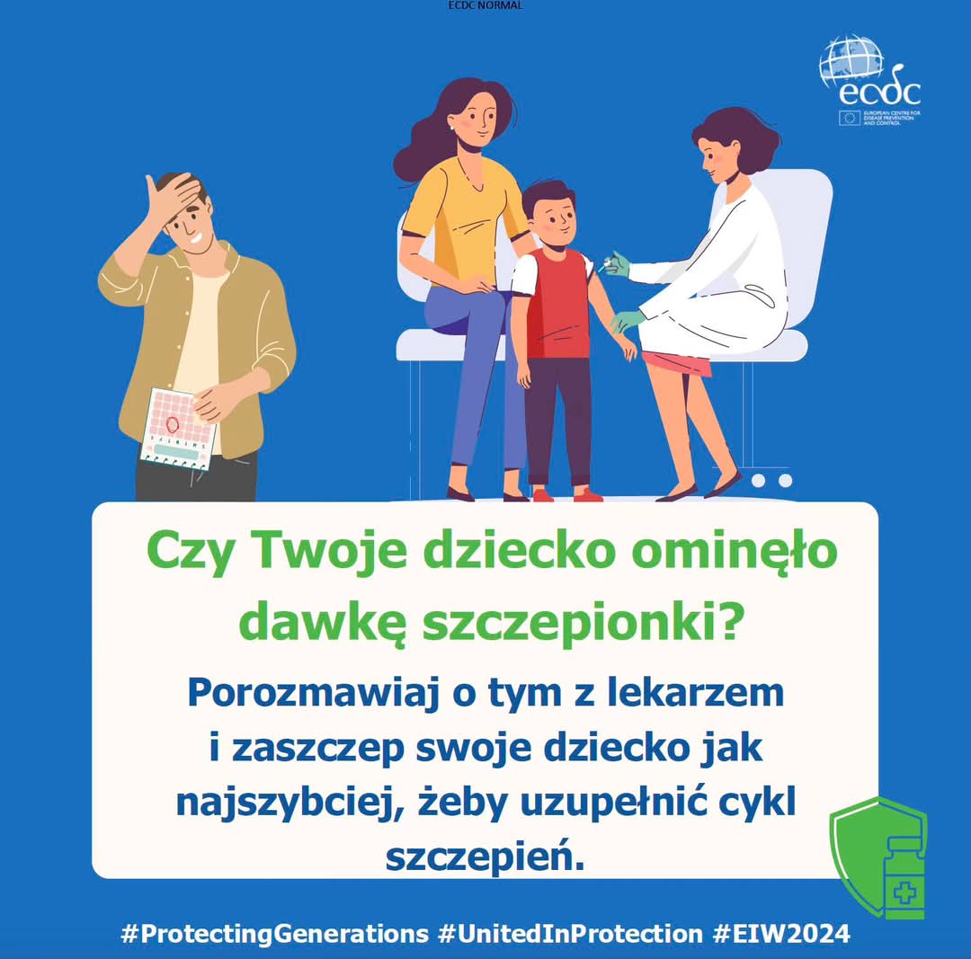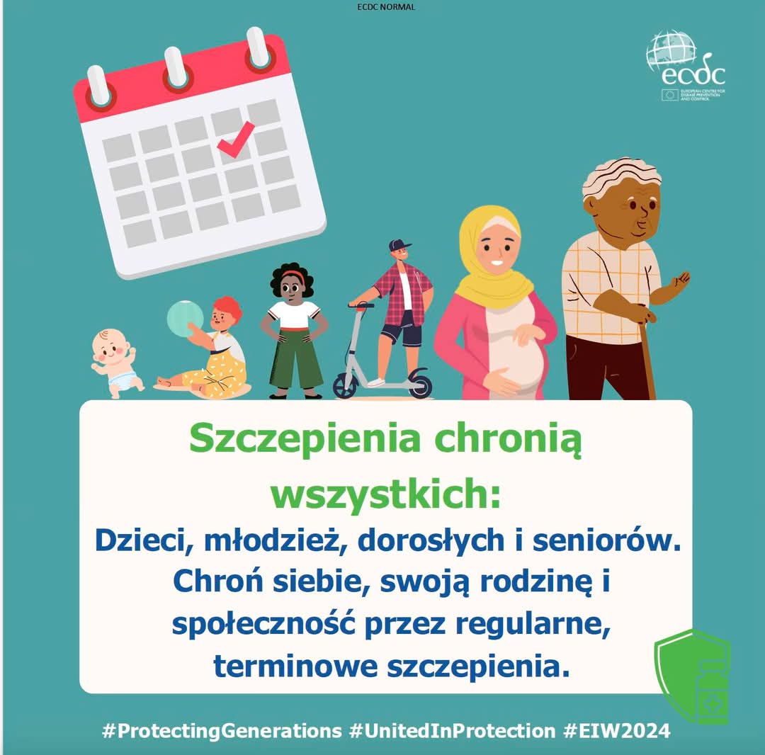 W dniach 27 kwietnia - 3 maja 2025r. będziemy realizować Europejski Tydzień Szczepień, który jest inicjatywą Światowej Organizacji Zdrowia mającą na celu zwiększenie świadomości społeczeństwa na temat roli szczepień w zapobieganiu chorobom i ochronie życia.