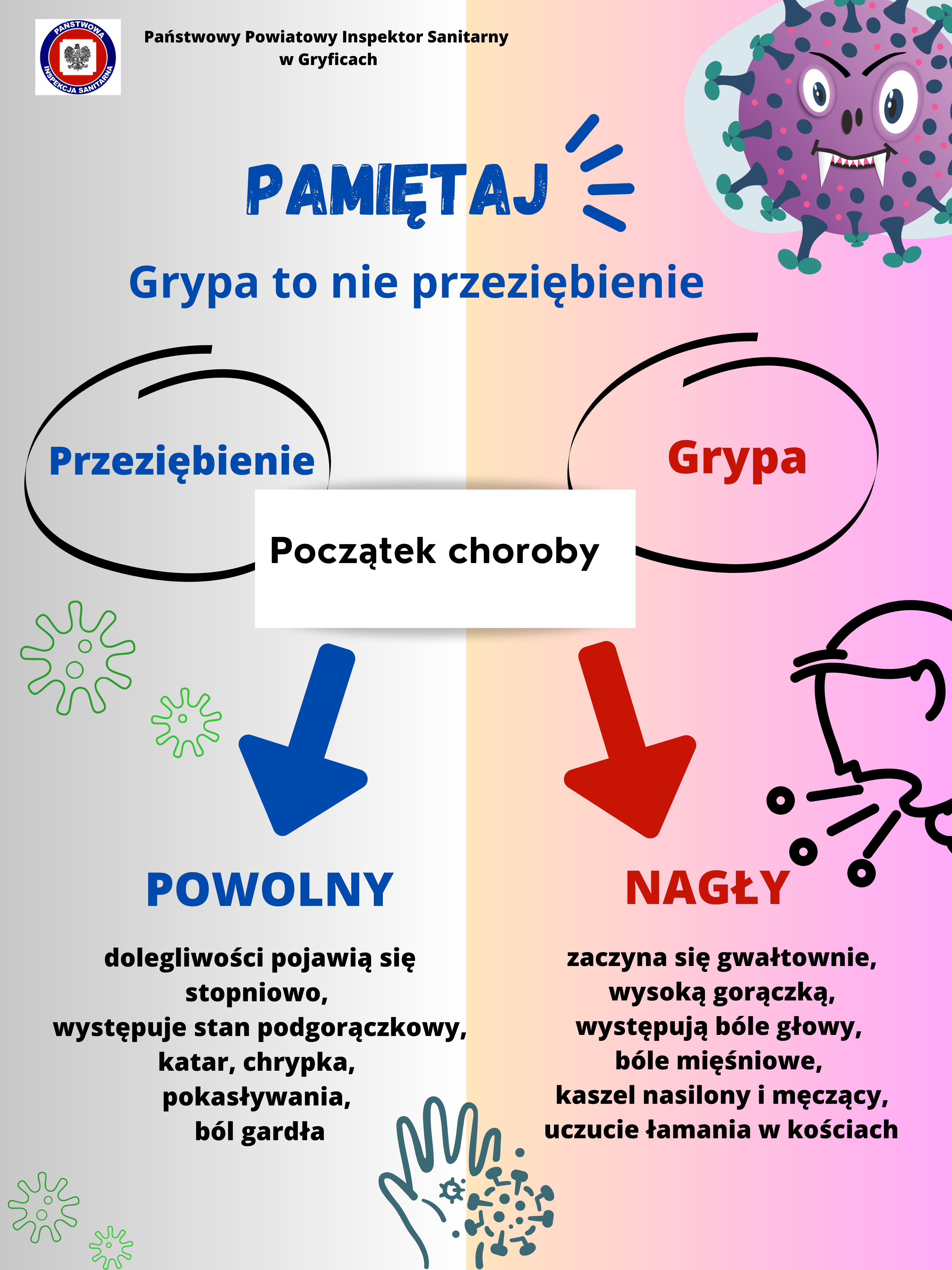 Pamiętaj ! Grypa to nie przeziębienie.