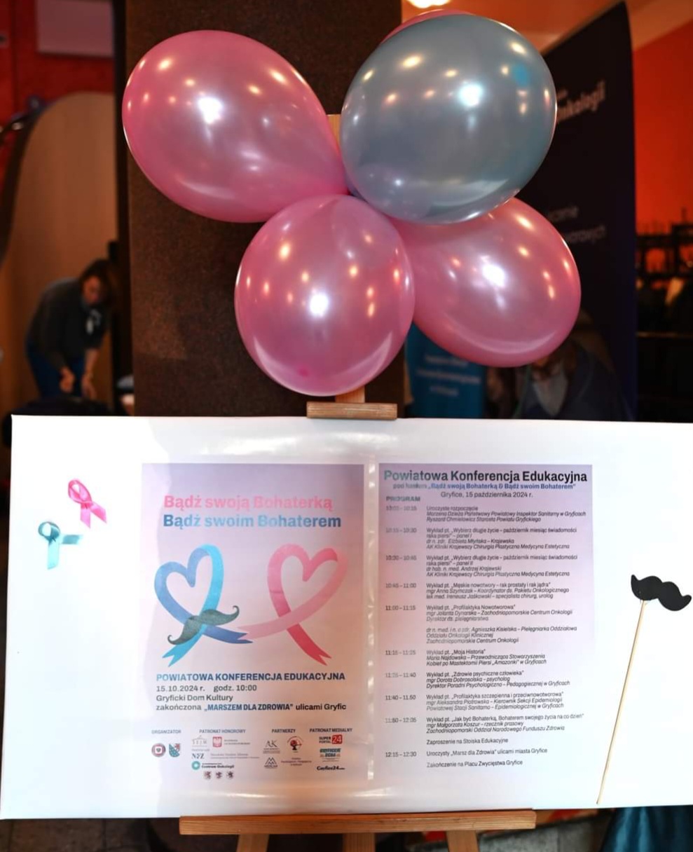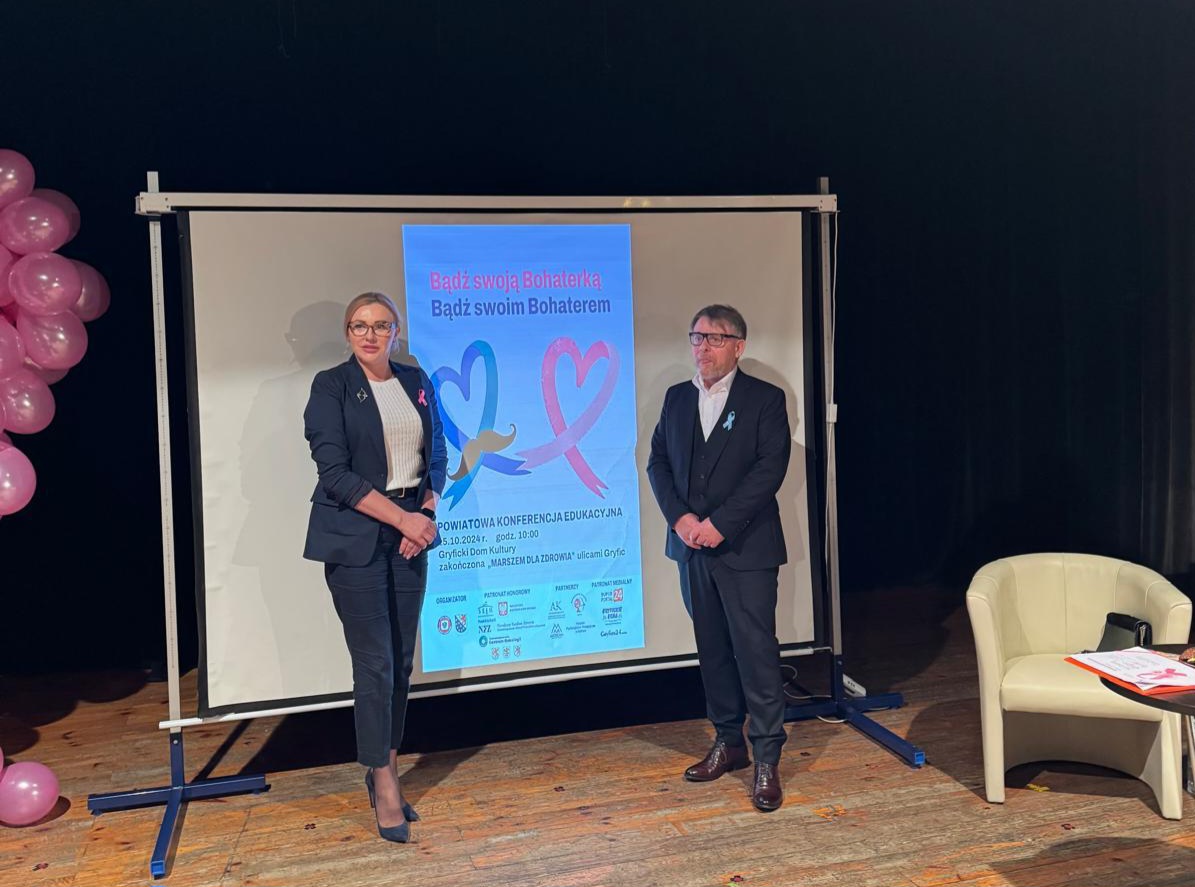W dniu 15 października 2024r. Państwowy Powiatowy Inspektor Sanitarny w Gryficach we współpracy z lokalnymi władzami samorządowymi, przy wsparciu środowiska medycznego był organizatorem powiatowego wydarzenia mającego na celu popularyzację wiedzy dotyczącej wczesnego wykrywania raka piersi i raka prostaty.