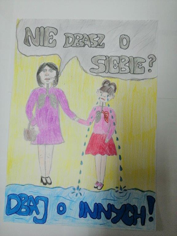 Powiatowy Konkurs Plastyczny pod hasłem „Jak to zrobić, żeby inni nie palili?” - z hasłem reklamowym promującym niepalenie papierosów