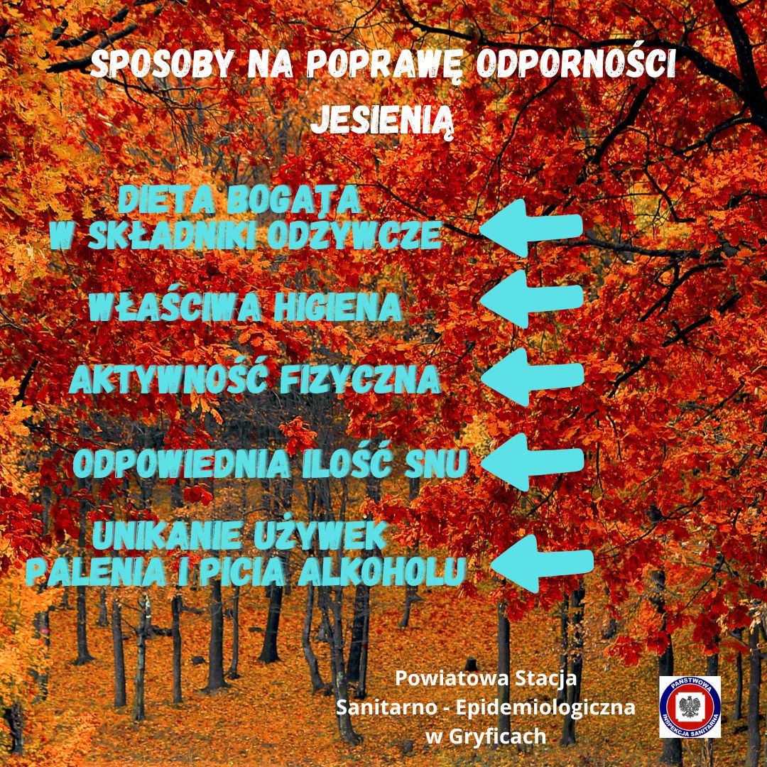 Koncentrowanie się na zdrowej diecie w okresie jesiennym jest szczególnie ważne. Należy zadbać o optymalną dawkę białka, cukrów, tłuszczy i węglowodanów o niskim indeksie glikemicznym. Ogromnie istotną rolę w układzie odpornościowym ogrywa witamina C, witaminy z grupy B, a także magnez, cynk oraz selen.