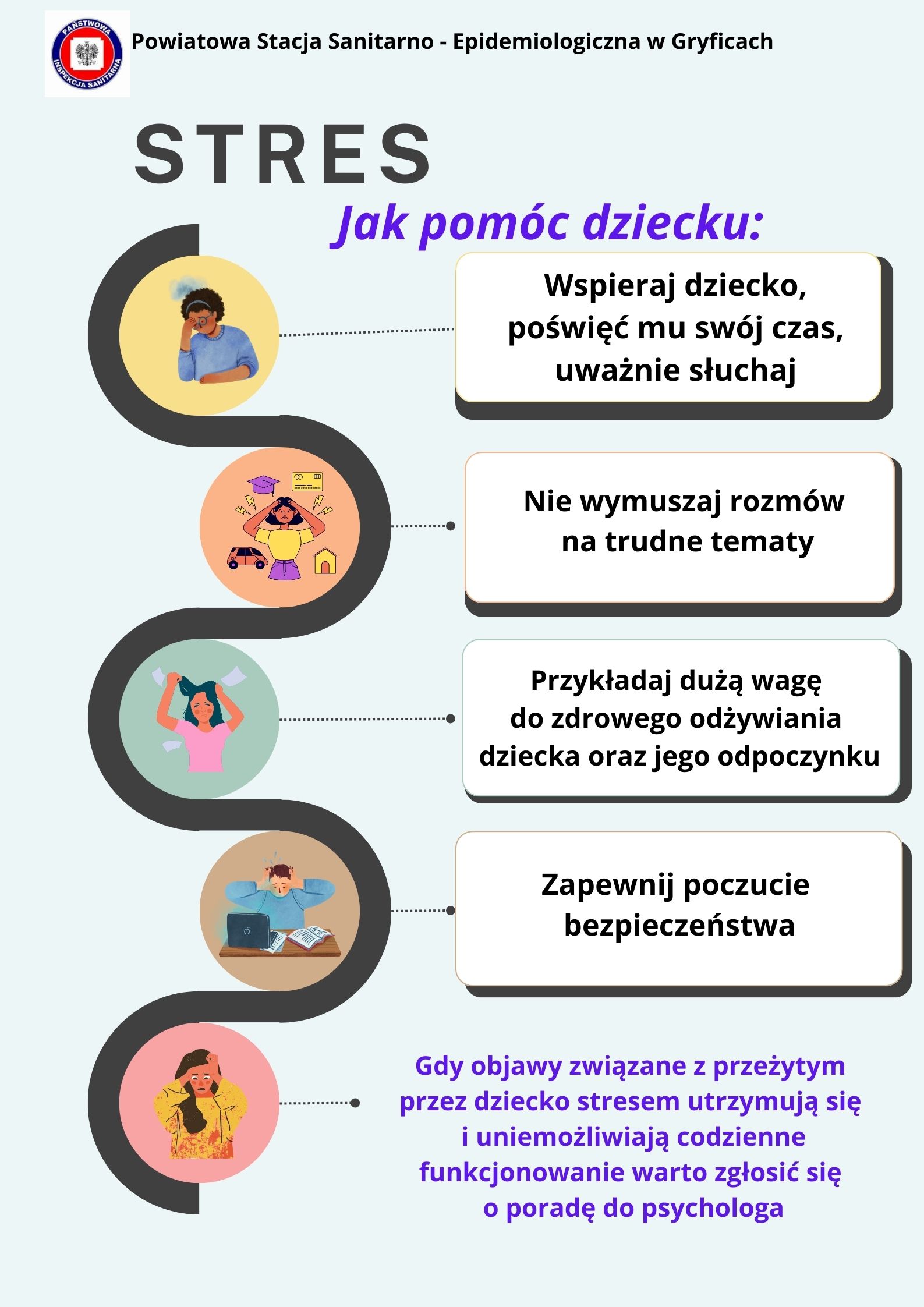 Stres może też objawiać m.in..: nadmiernym apetytem lub jego brakiem, apatią, ciągłym poirytowaniem, wybuchami gniewu, obgryzaniem paznokci, wyrywaniem włosów, lękami i koszmarami nocnymi, trudnościami w koncentracji uwagi.