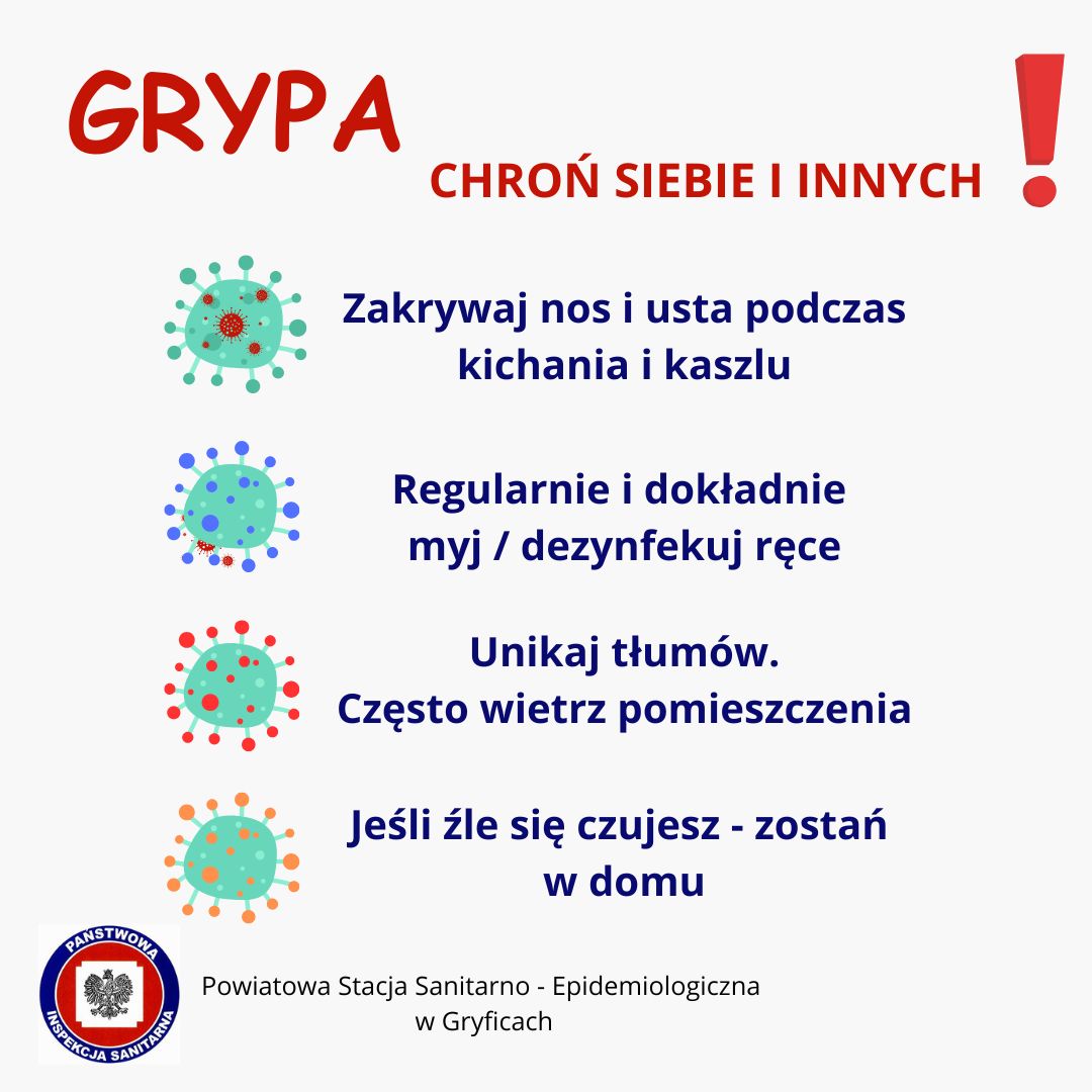 W miesiącach styczeń, luty obserwujemy co roku zwiększoną zachorowalność na GRYPĘ