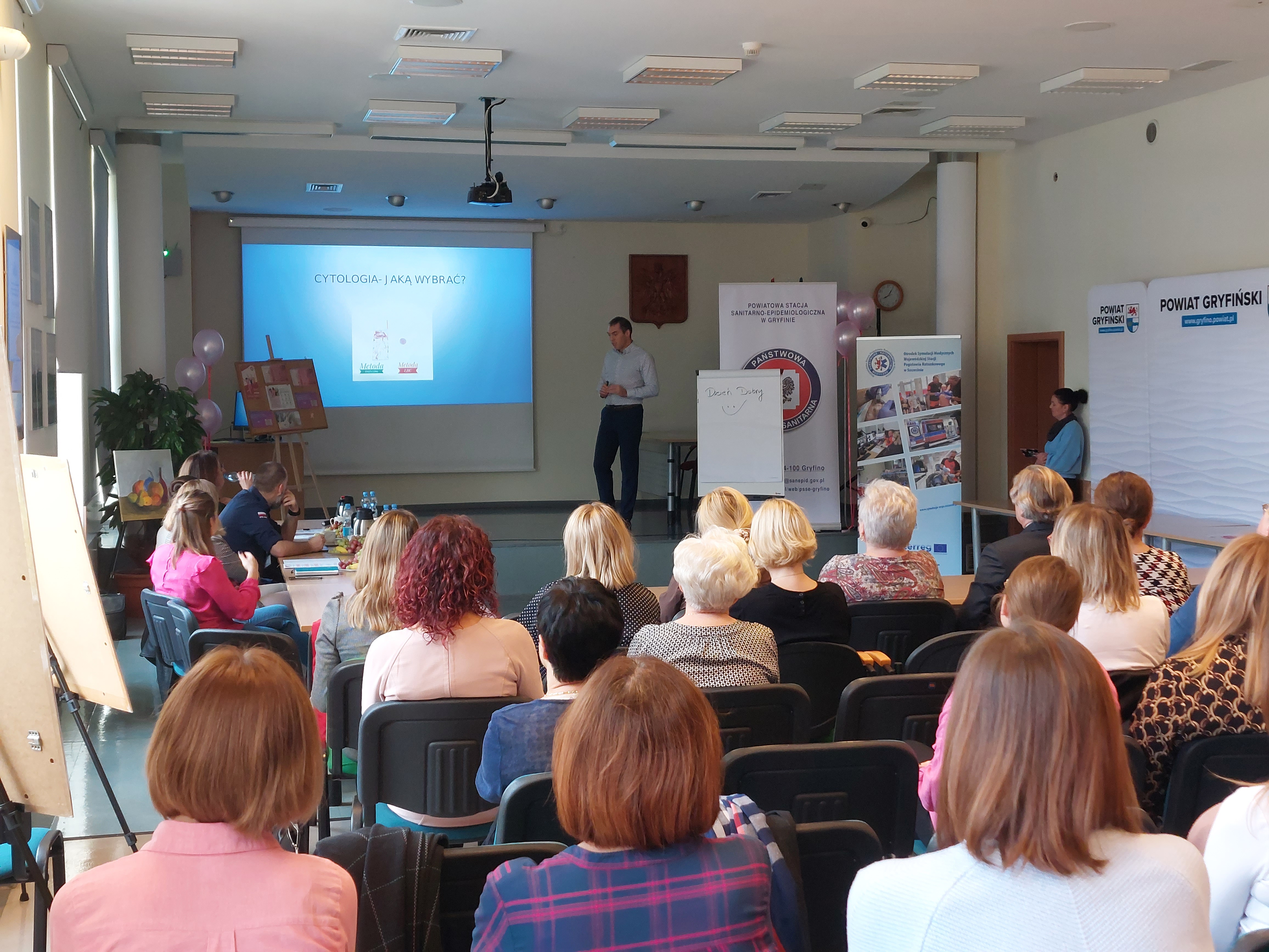 Następnie usłyszeliśmy wykład doktora Sławomira Szymańskiego - ginekologa, onkologa pracującego w Szpitalu Powiatowym w Gryfinie, który omówił zagadnienia raka szyjki macicy oraz piersi.