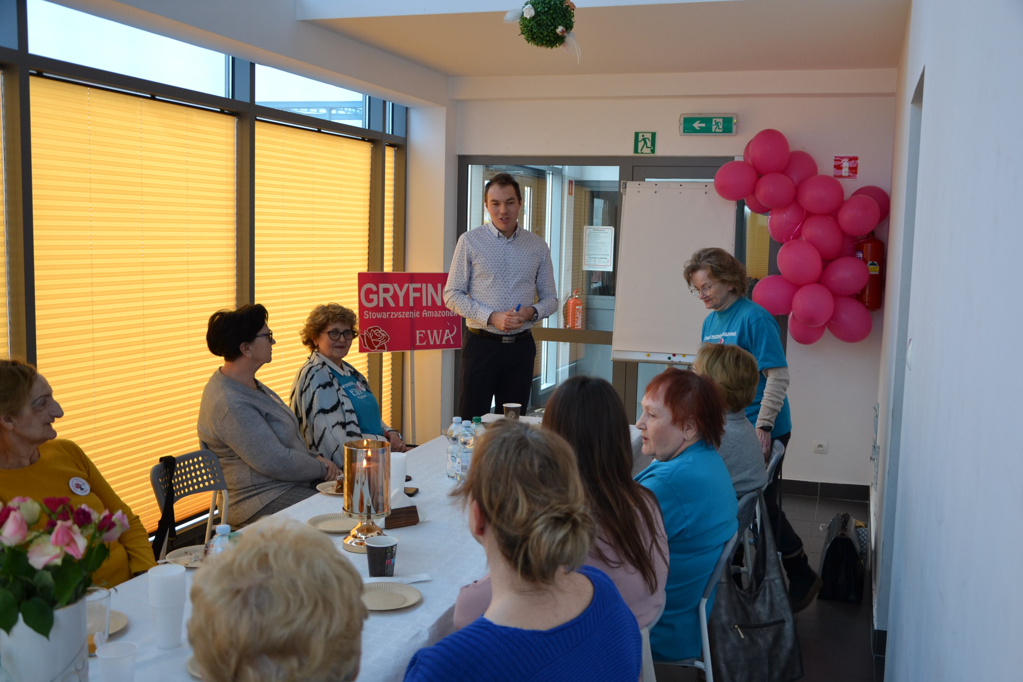 Dzięki współpracy Powiatowej Stacji Sanitarno - Epidemiologicznej ze Stowarzyszeniem Amazonek "EWA", Ośrodkiem Pomocy Społecznej i Szpitalem Powiatowym w Gryfinie udało się zorganizować spotkanie dla mieszkanek Gryfina, na którym poruszano tematykę: