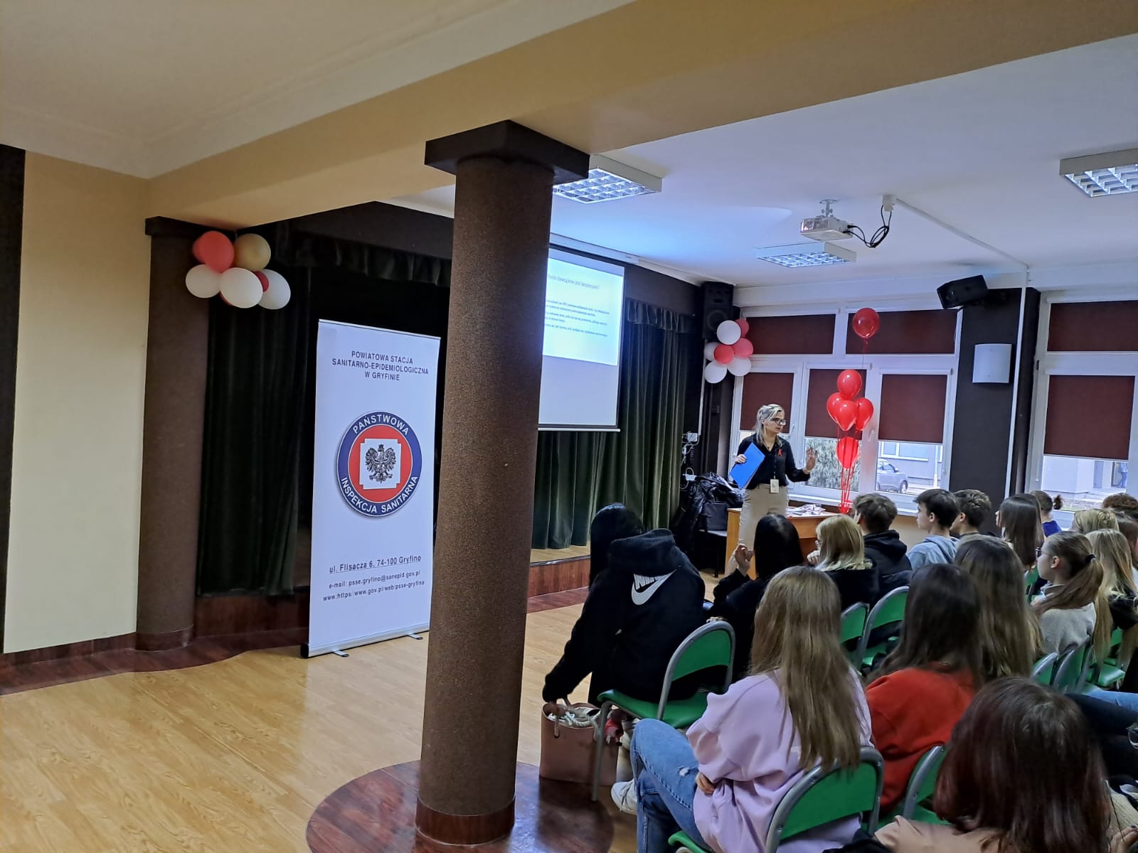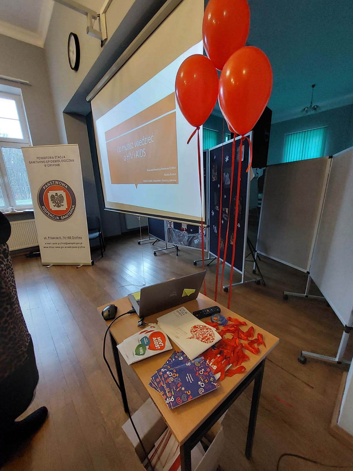 Oświata Zdrowotna i Promocja Zdrowia Powiatowej Stacji Sanitarno – Epidemiologicznej w Gryfinie z okazji obchodów Światowego Dnia AIDS przypadających na dzień 1 grudnia, zorganizowała prelekcje dla młodzieży.