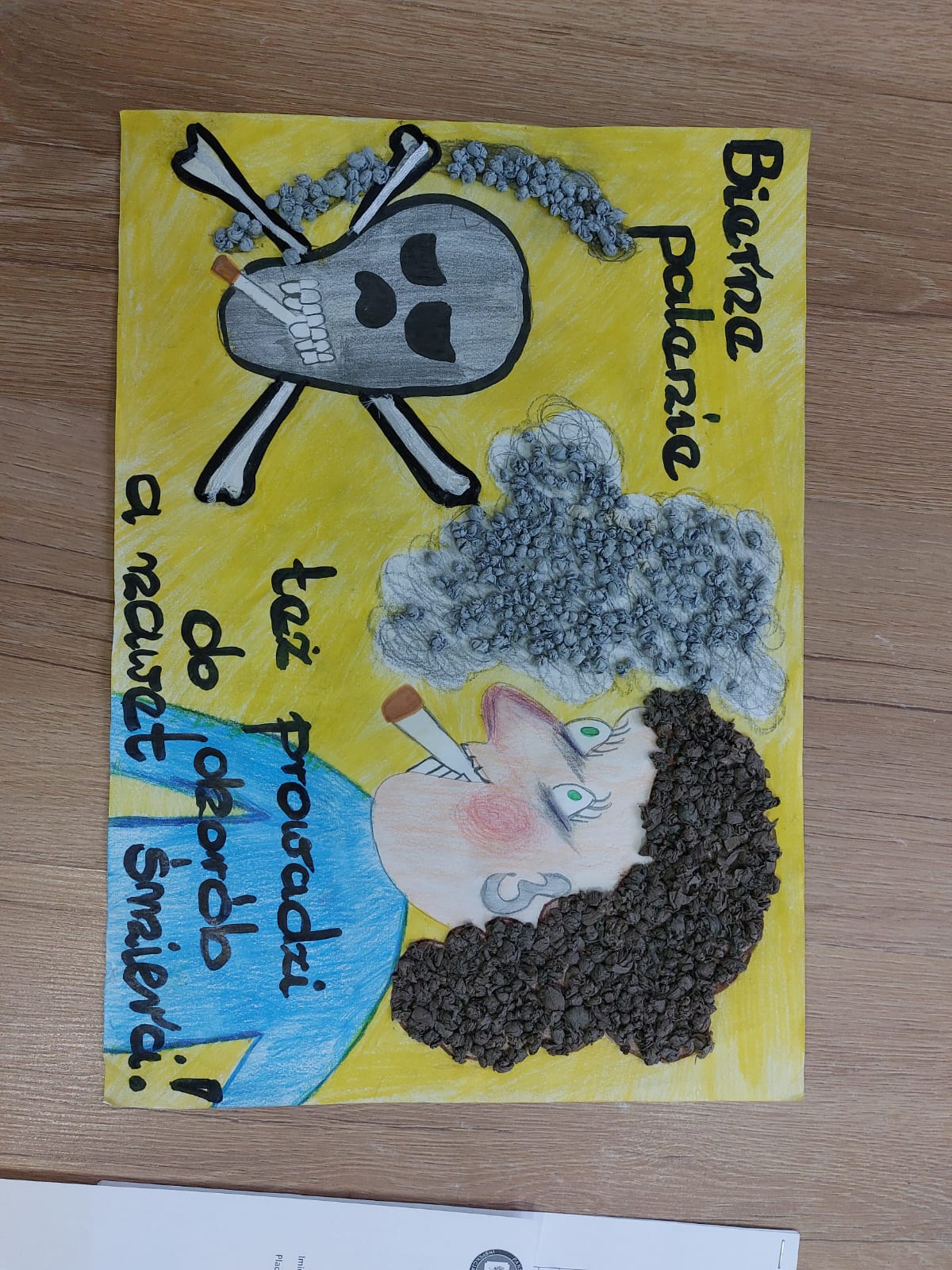 W konkursie udział mogli wziąć uczniowie klas 4-6 szkół podstawowych. Uczestnicy mieli za zadanie wykonać prace plastyczną - collage w formacie A3 o tematyce szkodliwości palenia.