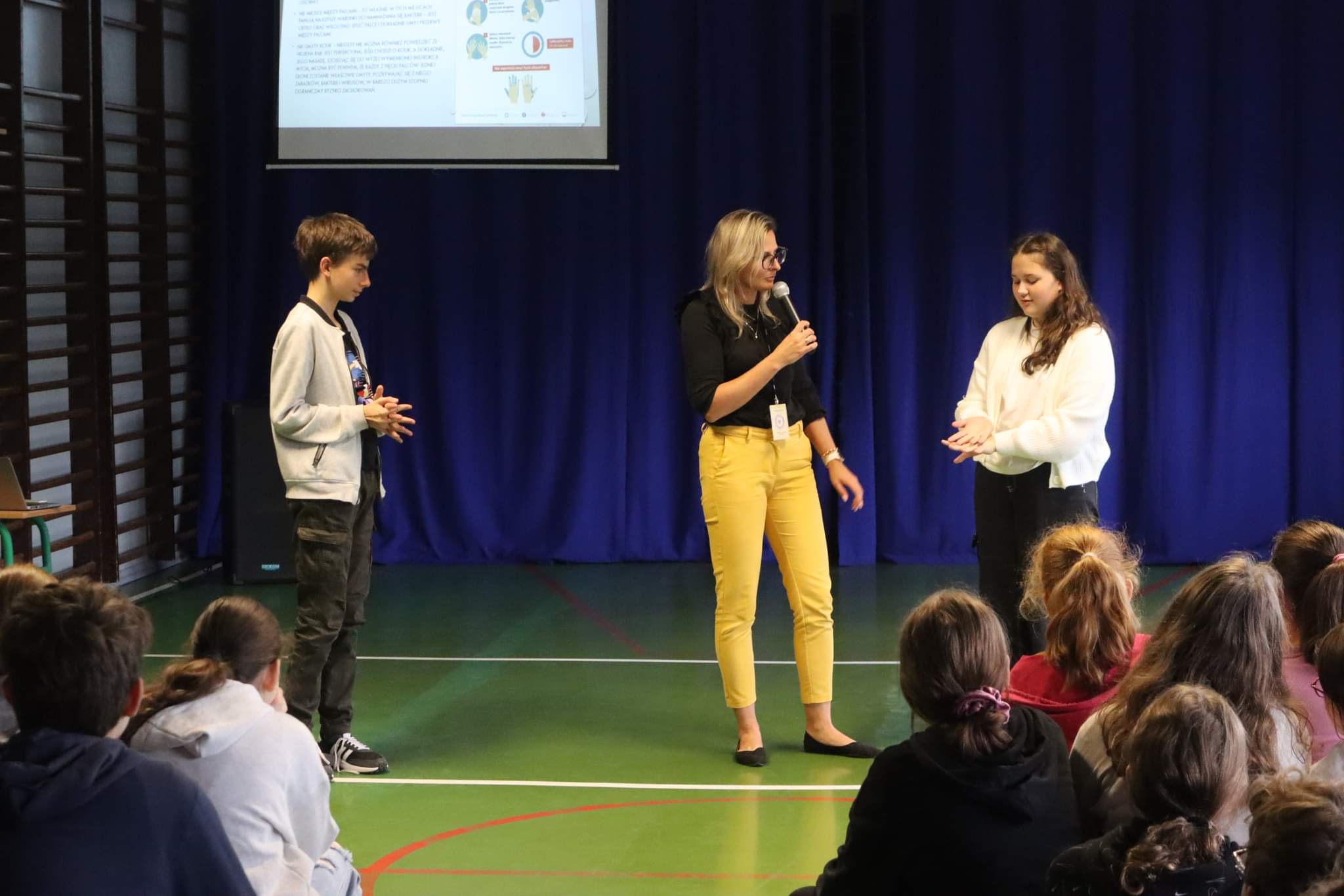 Na zaproszenie Szkoły Podstawowej im. Stefana Żeromskiego w Trzcińsku Zdroju, pracownik Oświaty Zdrowotnej i Promocji Zdrowia PSSE w Gryfinie - Natalia Korkuś oraz Państwowy Powiatowy Inspektor Sanitarny w Gryfinie - Woletta Rożko, poprowadziły zajęcia z dziećmi z klas 1-8 o tematyce chorób zakaźnych, ochrony przed zachorowaniem oraz higieny i szczepień.