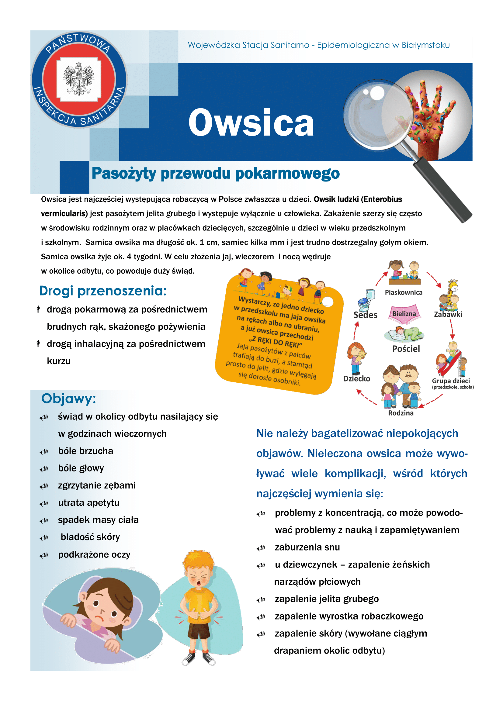 Państwowy Powiatowy Inspektor Sanitarny w Hajnówce informuje, że w miesiącu grudniu z inicjatywy Wojewódzkiej Stacji Sanitarno-Epidemiologicznej we współpracy z Medycznym Laboratorium Diagnostycznym w Białymstoku została przeprowadzona akcja badania dzieci uczęszczających do przedszkoli w kierunku obecności jaj owsików.