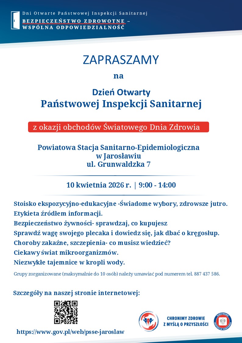 Serdecznie zapraszamy mieszkańców powiatu jarosławskiego na Otwarte Dni Państwowej Inspekcji Sanitarnej. To wyjątkowa okazja, aby: