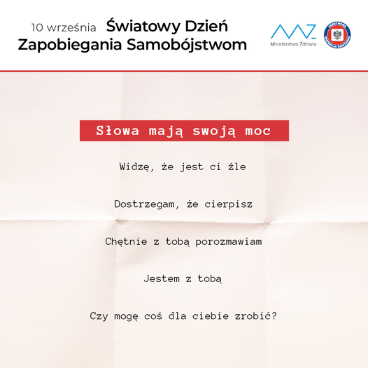 10 września obchodzimy Światowy Dzień Zapobiegania Samobójstwom. Święto zainicjowane w 2003 roku przez Międzynarodowe Towarzystwo Zapobiegania Samobójstwom (IASP) we współpracy z Światową Organizacją Zdrowia (WHO) i Światową Federacją Zdrowia Psychicznego (WFMH).