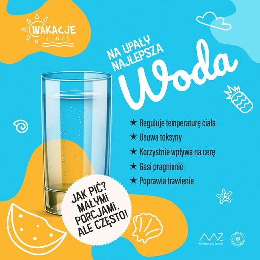 Podczas upałów łatwiej o odwodnienie organizmu, które może być groźne dla zdrowia. Regularne picie wody pomoże zachować dobre samopoczucie i odpowiedni poziom nawodnienia.