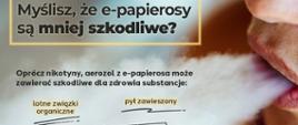 • to elektroniczny system dostarczający nikotynę • podgrzewają ciecz i wytwarzają aerozol lub mieszankę małych cząstek w powietrzu Używanie nikotyny, w tym także e-papierosów, jest szczególnie niebezpieczne dla dzieci i młodzieży. Nikotyna silnie uzależnia i może szkodzić rozwojowi mózgu! Czy uważasz, że są mniej szkodliwe niż tradycyjne? Sprawdź, jak jest naprawdę!