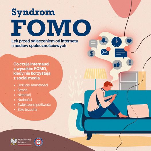 FOMO (ang. Fear of Missing Out) – lęk przed tym, że nie jesteśmy na bieżąco z informacjami w mediach społecznościowych (coś nas omija) lub lęk przed utratą stałej łączności z innymi. Osoby dotknięte tym problemem przejawiają ciągłą potrzebę sięgania po smartfon, sprawdzania e-maila, treści na portalach społecznościowych